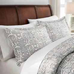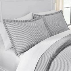 Home Decorators Collection Ada 3-Piece Gray and White Stripe Cotton King Duvet Cover Set