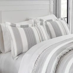 Home Decorators Collection Arden 3-Piece White and Gray Textured Stripe Full/Queen Comforter Set