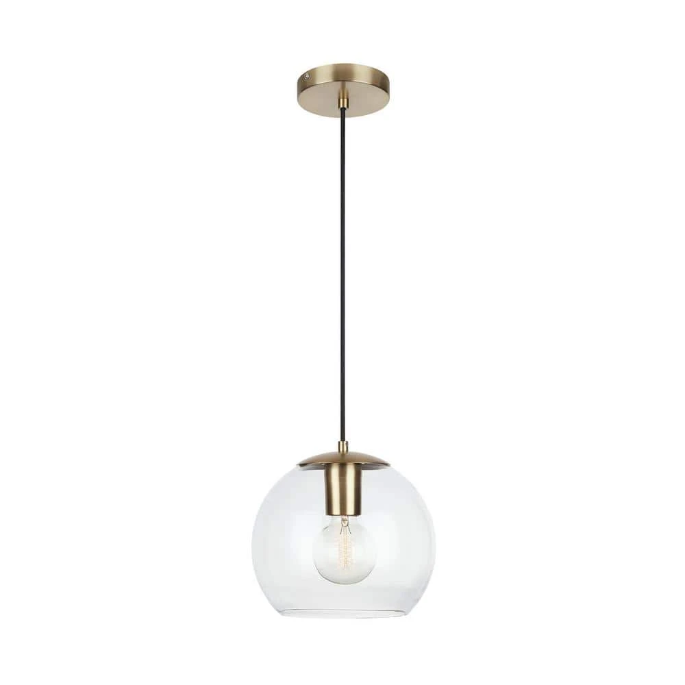 Accented with antique brass finish and a glass shade, this Home Decorators Mini Pendant brings warm and bold style to any space. This pendant uses a 40-Watt Vintage Edison Bulb which is included. It adds an industrial flare and achieves the perfect mood lighting. This lamp is hardwired compatible and is equipped with a 48 in. fabric black cord. Also includes a 5 in. antique brass canopy.