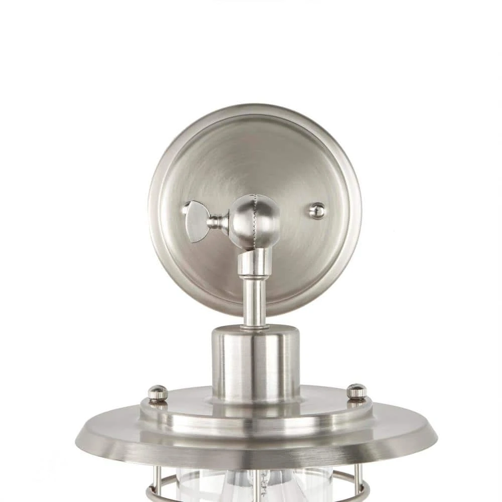 Clear glass with a caged look offsets a brushed nickel finish to enhance the minimalist design of this 1-light wall sconce. The timeless design features clean lines for a nautical look that will provide soft, ambient light to your home. Whether you prefer transitional or contemporary decor, this is the perfect fixture to update any area in your home. Updating the lighting in your home is the most effective way to accomplish a striking, yet simple, Do It Yourself remodel.