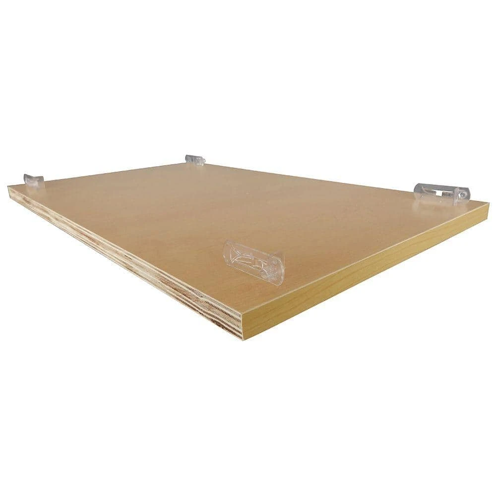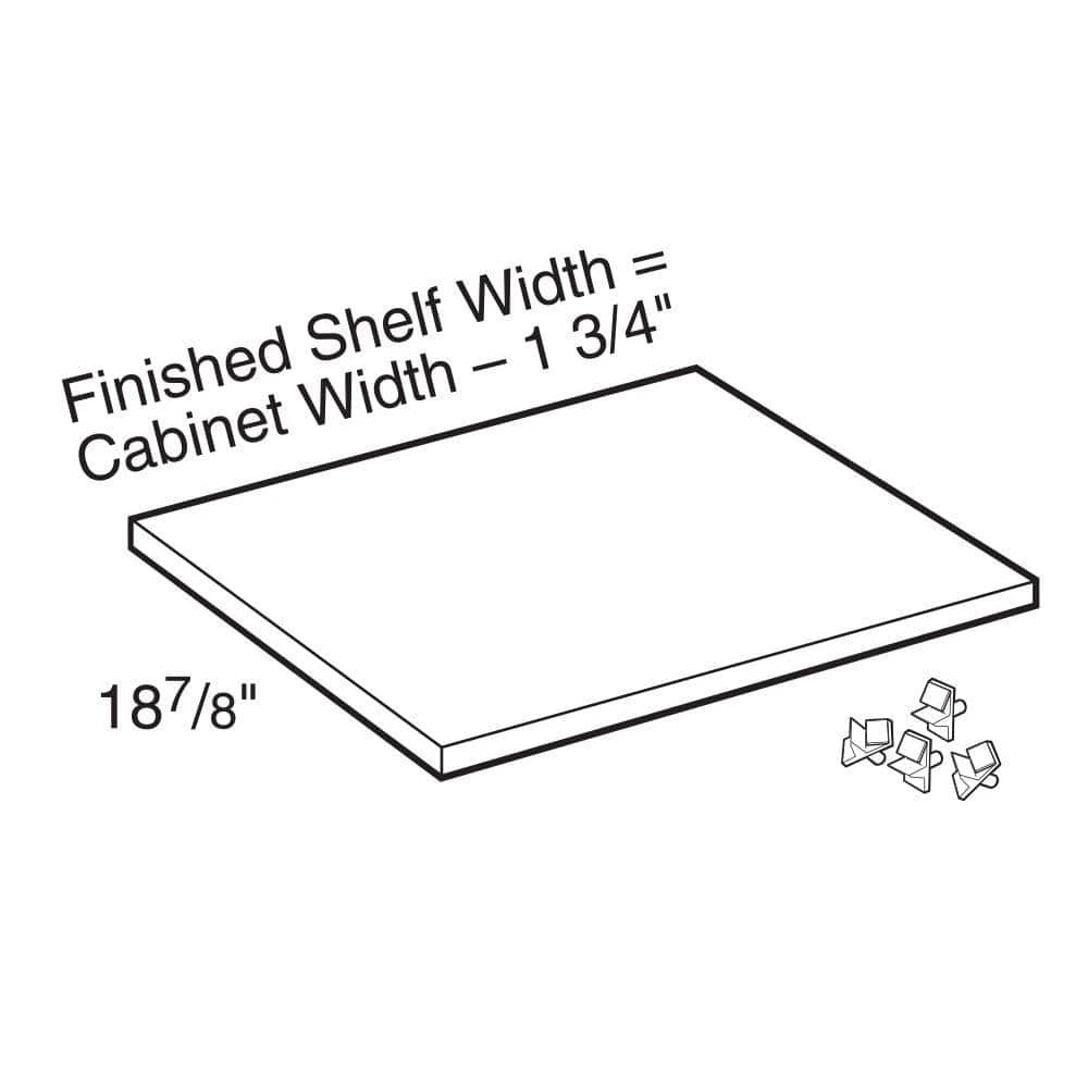 This full depth adjustable shelf kit from Home Decorators Collection includes a 3/4 in. thick shelf panel and 4 clear plastic locking shelf rests. The shelf is sized to fit a 24 in. wide x 21 in. deep Home Decorators Collection vanity base cabinet. Made with CARB compliant furniture grade plywood for your peace of mind.