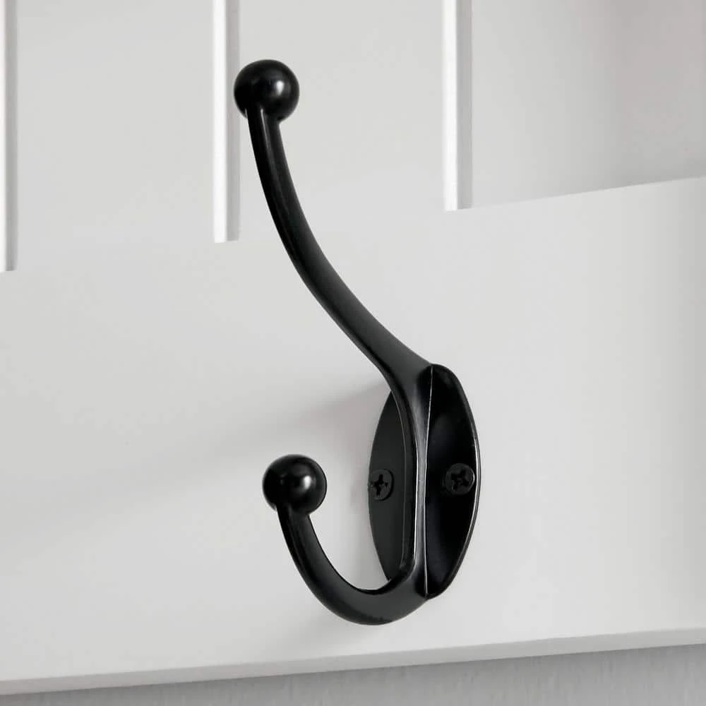 - Solid wood shelf has four built-in hooks for keys or scarves