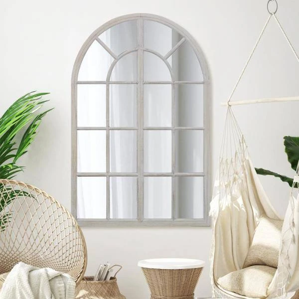 The Arched Wooden Classic Accent Mirror from Home Decorators Collection features circular arc design which makes the interior decoration style unique. your house will look bright and spacious because of the larger size mirror, with two D-rings the mirror can be hung up securely. Gently wipe the mirror with a clean, soft cloth to keep it clean.