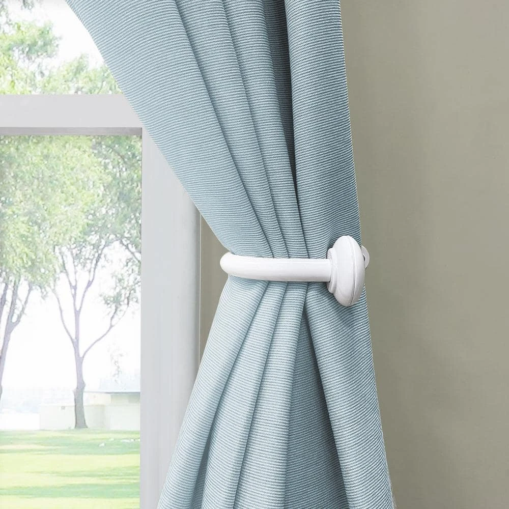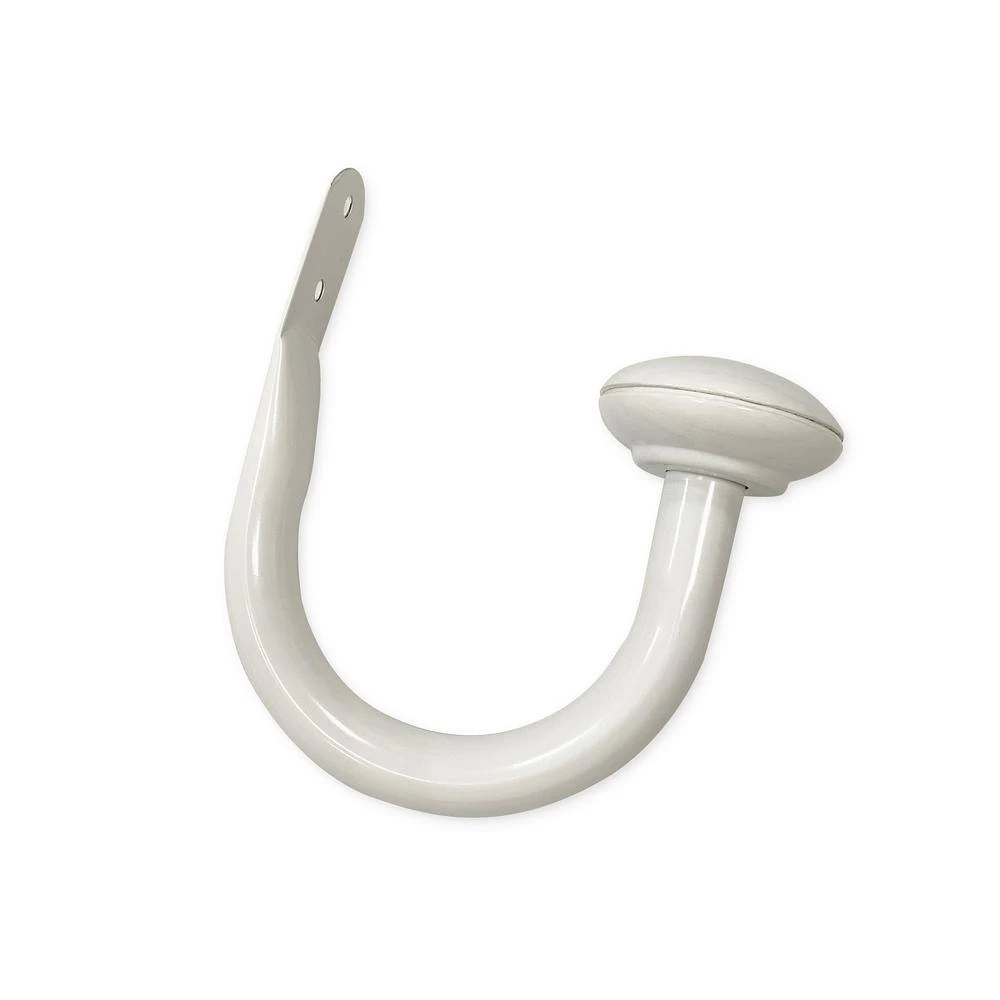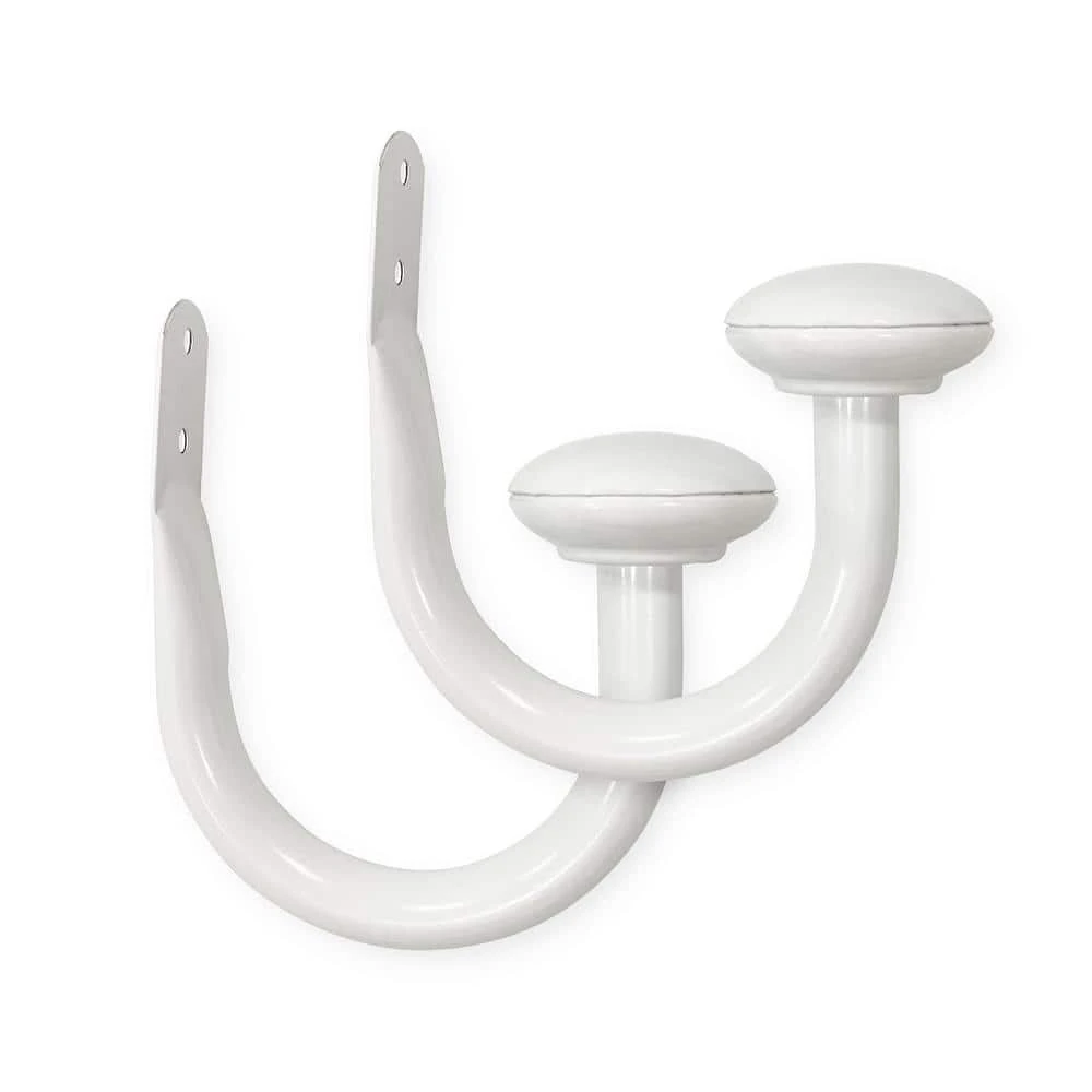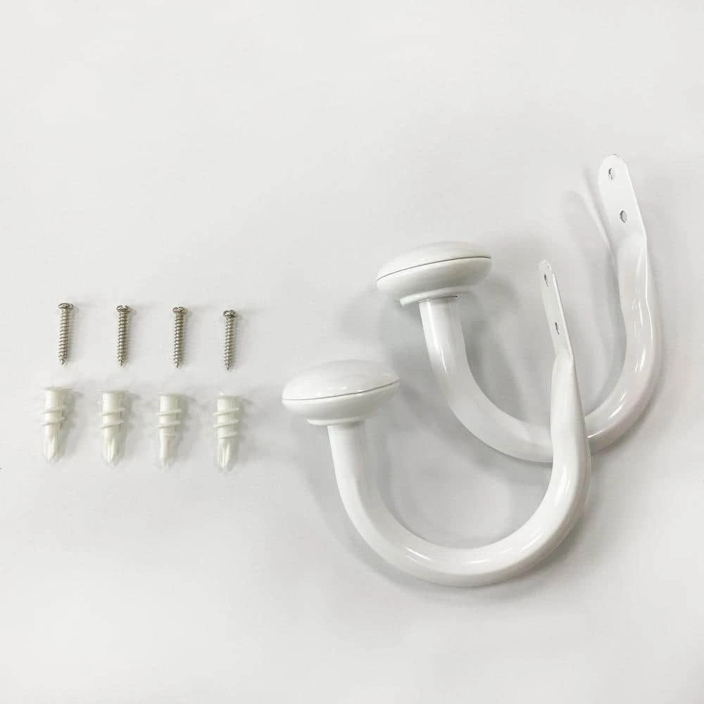 The Home Decorators Collection Holdback set in white includes 2-pieces of 3/4 in. holdback and mounting hardware for easy installation. This stylish holdback set holds the drapes open and allows more light into the room. The modern finial design complements a broad range of decorative rod sets.