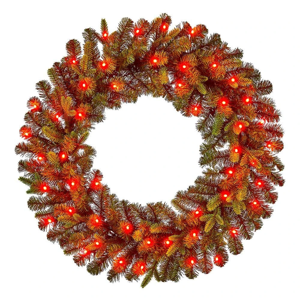 - Includes round pre-lit artificial spruce wreath