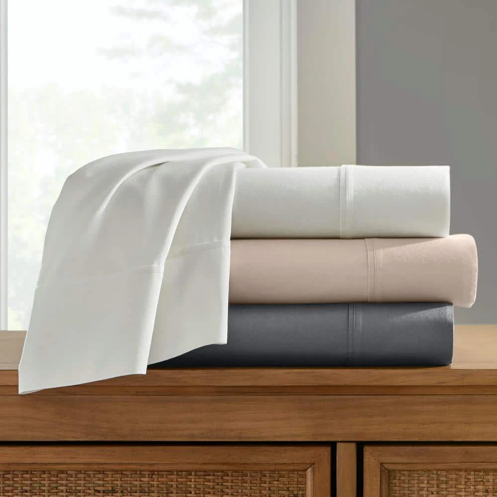 We’ve crafted this Home Decorators Collection 300 Thread Count Cotton Sateen Sheet Set with 100% certified cotton for an incredible hand feel and durable quality. The 300 thread count sateen weave provides unparalleled softness and silkiness. Fine yarns provide a lightweight and balanced fabric adding comfort to your sleep experience. This cotton sateen sheet set is also wrinkle resistant, which means you can worry less about wrinkles out the dryer. You can be confident in your purchase as these 300 thread count cotton sateen sheets are certified STANDARD 100 by OEKO-TEX, meaning they have been independently tested for harmful substances according to strict scientific criteria that go beyond global legal regulations.