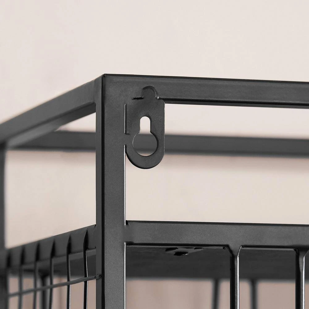 Add a touch of elegance to your farmhouse-style decor with the Black Metal Wall-Mount Shelf with Hanging Wine Glass Storage from Home Decorators Collection. It features a sturdy metal frame with wooden shelves ideal for stocking up your favorite bottles of wine conveniently. Its 2-tier wall-mounting design makes this floating shelf a practical addition to your kitchen or dining room.