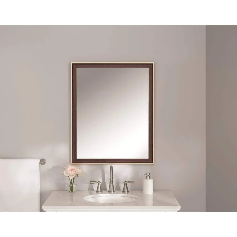 The special mirror frame combines two different colors to make the mirror more clever. The outer color is champagne, and the inner color is walnut. The special design makes this the perfect framed mirror to compliment any decor. The waterproof finish makes this mirror an ideal fit for your updated bathroom or kitchen, and is designed to be hung either vertically or horizontally for flexible styling.