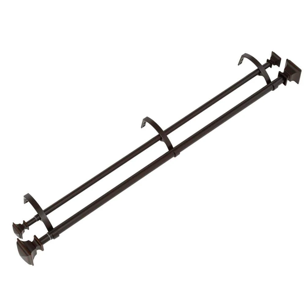 Enhance the style of your window treatments with this Home Decorators Collection telescoping double curtain rod. This rod features a square cage design with an oil-rubbed bronze finish and finials that match many home styles. The double rod allows you to hang a sheer curtain on the inside for a layered look. This rod is easy to install yourself and adjusts between 36 and 72 in. This set includes two telescoping rods, four finials, mounting hardware and installation brackets.