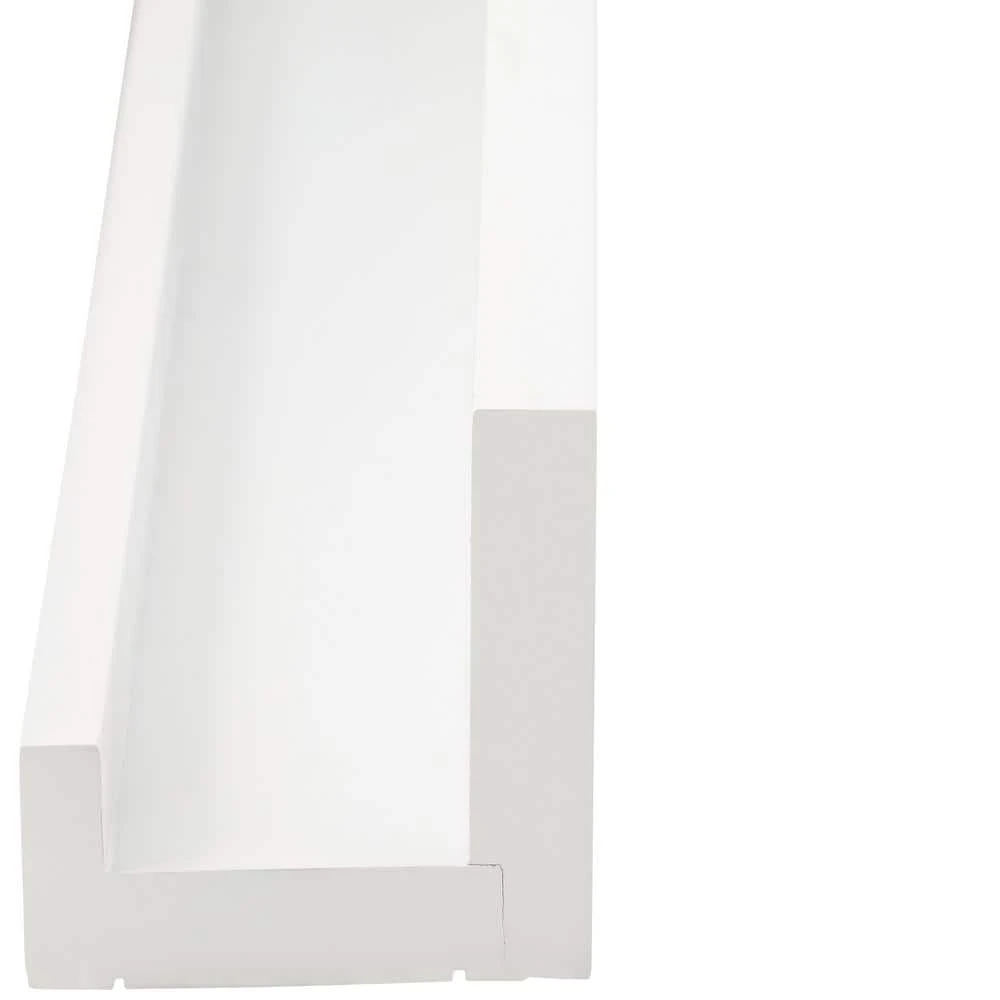 Curate a gallery of art, photos and/or decorative objects with the 36 in. Photo Ledge by Home Decorators Collection. Offers the flexibility of changing out your displays without the need to reinstall any hardware or damage to your walls. Super chic white finish with upturned edges and slim silhouette gives your objects a polished point of view. Stagger them in the hall, dining room, living or any space that you want a dimensional focal point.