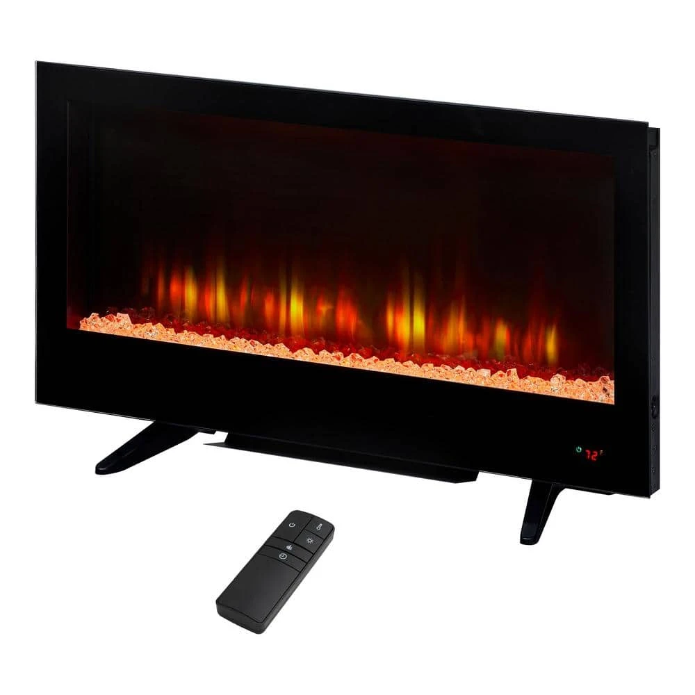 - LED wall mount or free standing electric fireplace with adjustable flame effect
