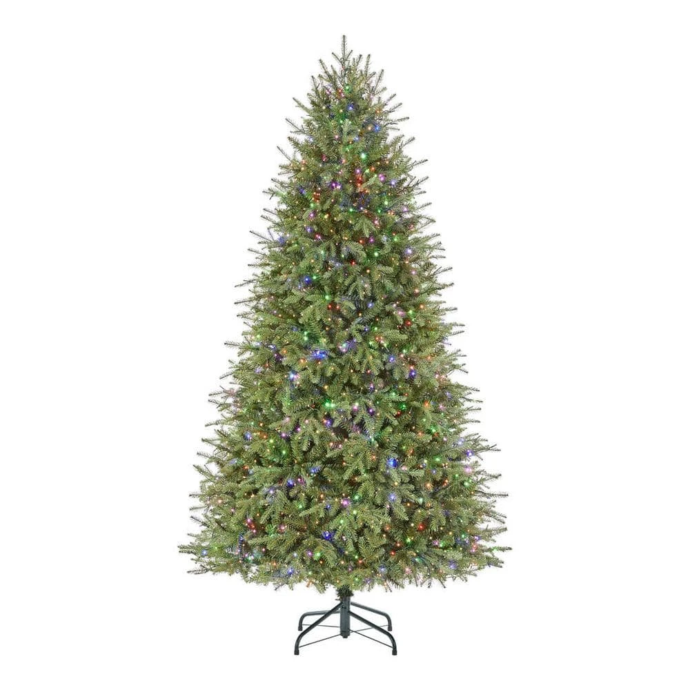 Get in the festive spirit with this 7.5-ft. Grand Duchess artificial balsam fir Christmas tree. The 2,250 color-changing 10-function LEDs fill your home with vibrant illumination and brilliant effects for a magical display, while the 3,271 branch tips provide thick foliage to hold your heirloom ornaments. An included remote control, a free remote control app and easy on/off functions ensure simple, convenient operation. Featuring memory wire branch tips, this Grand Duchess artificial balsam fir Christmas tree maintains its graceful shape during use or storage.