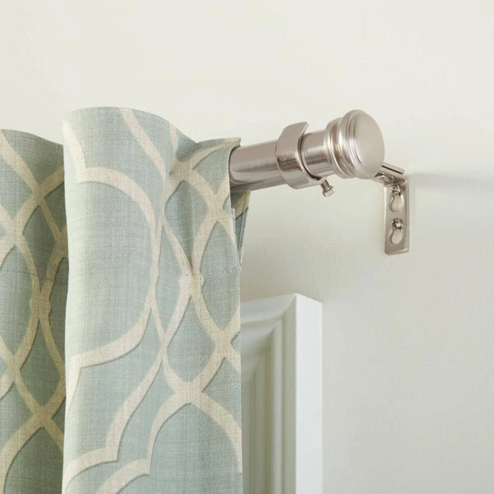 The Mix and Match Series from the Home Decorators Collection offer a range of quality metallic curtain rods, accessories and various finial designs. Adjustable from 72 in. L – 144 in. L with a telescoping design, this single curtain rod has a Brushed Nickel finish to enhance your interior decor while making a fine addition to any contemporary setting. Every rod set comes with a 1 in. telescoping rod, 2 end cap finials, installation brackets and mounting hardware so all you will need for a quick and easy installation is a screwdriver or a cordless drill. Finials can also be easily swapped out for another design to create your personal style.