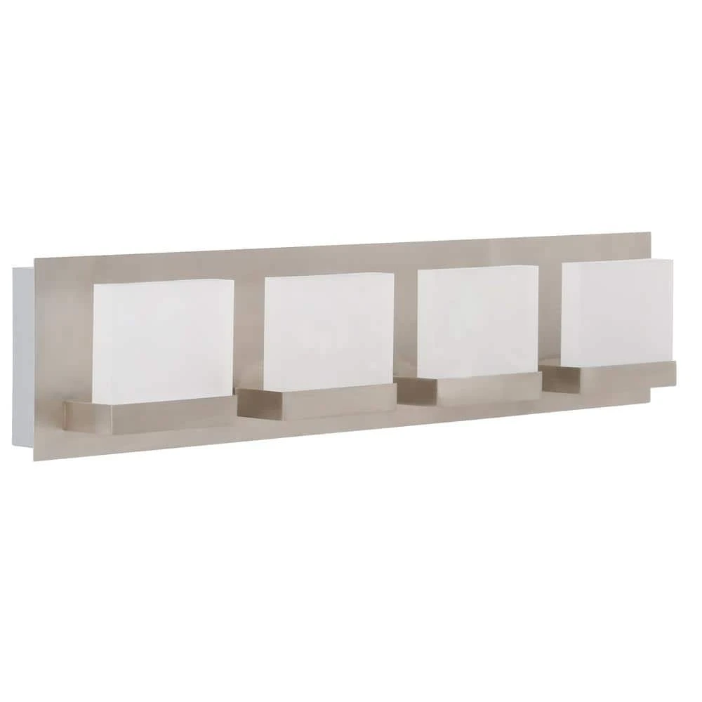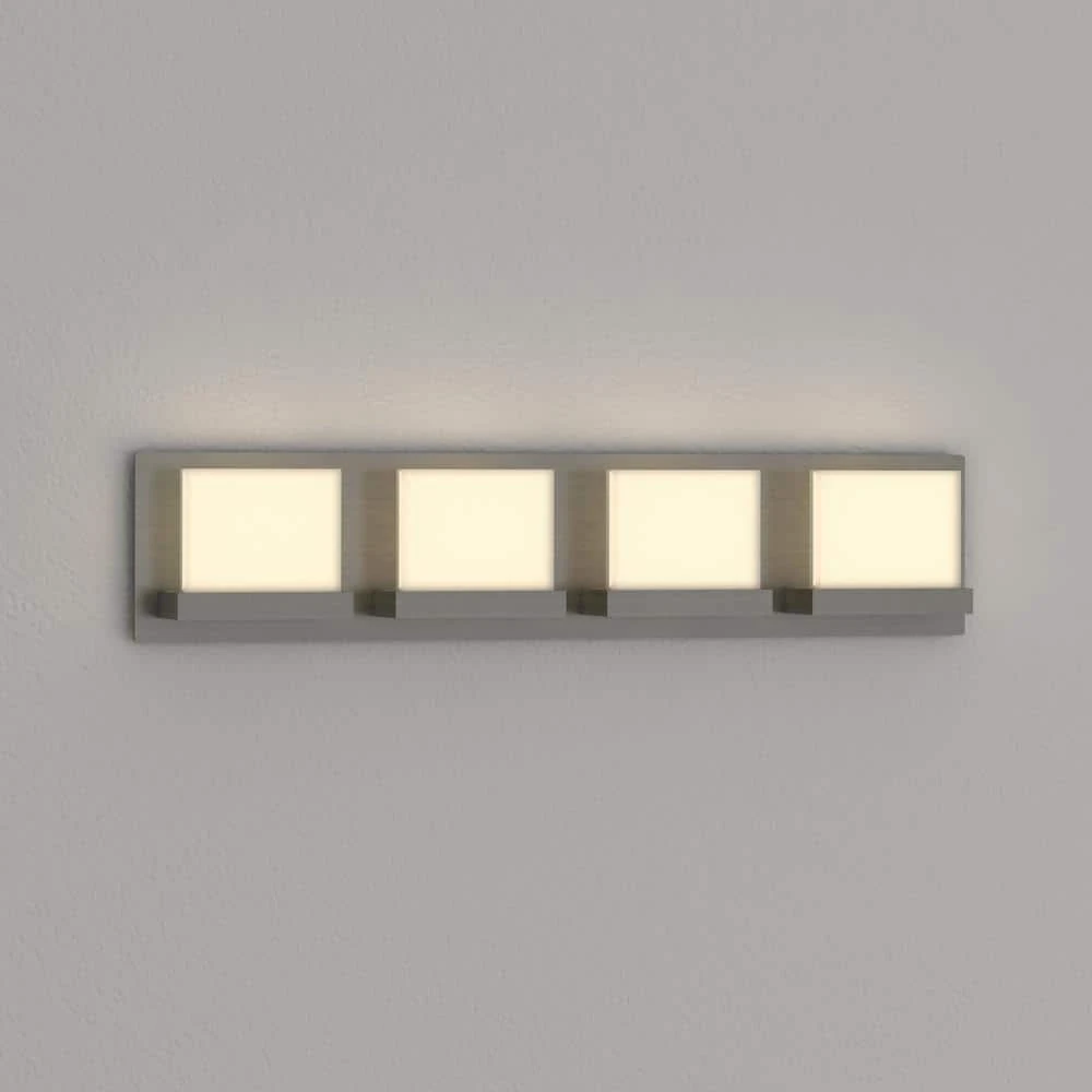 Contemporary lines, ultra-sleek look and high quality elegant finishes. The Alberson collection features frosted acrylic diffusers, vertically seated on a brushed nickel frame. This LED vanity adds a clean, refined look to your space. Available in 3 light and 4 light options.