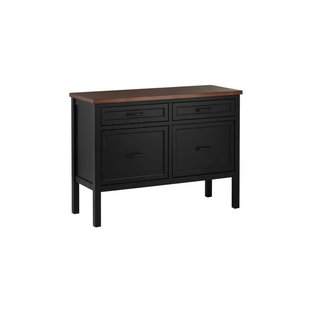 Our Home Decorators Collection Appleton file console is a handsomely designed piece of furniture that offers discreet storage. Crafted like fine cabinetry, the two-tone lateral cabinet has a classic painted finish balanced with a warm brown top. Store office supplies and hanging folders inside the multiple drawers.