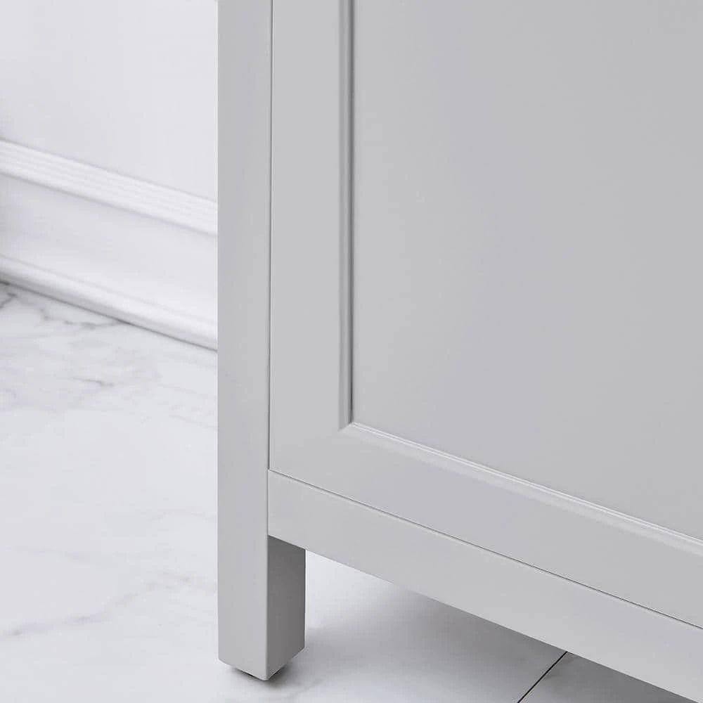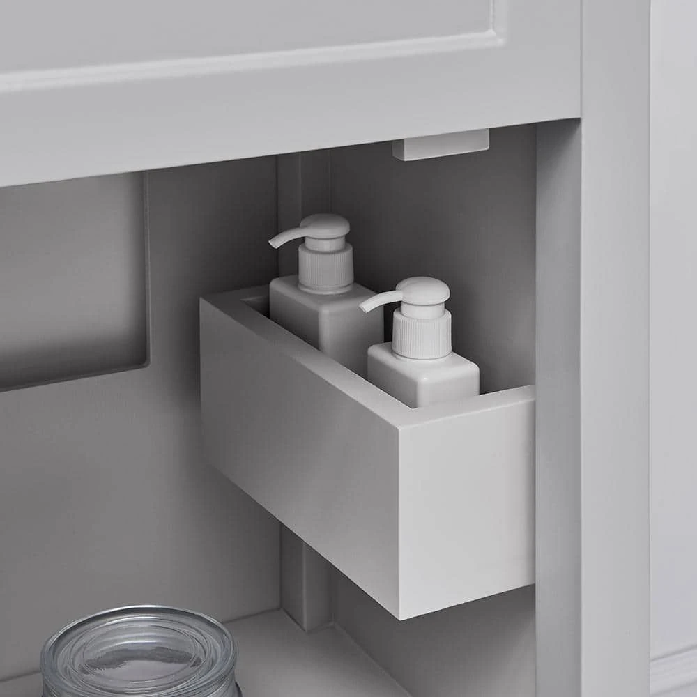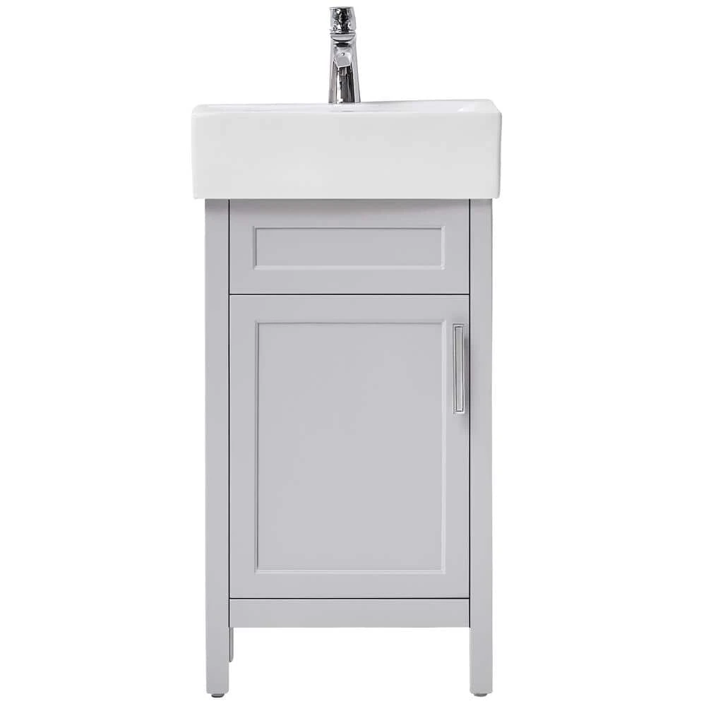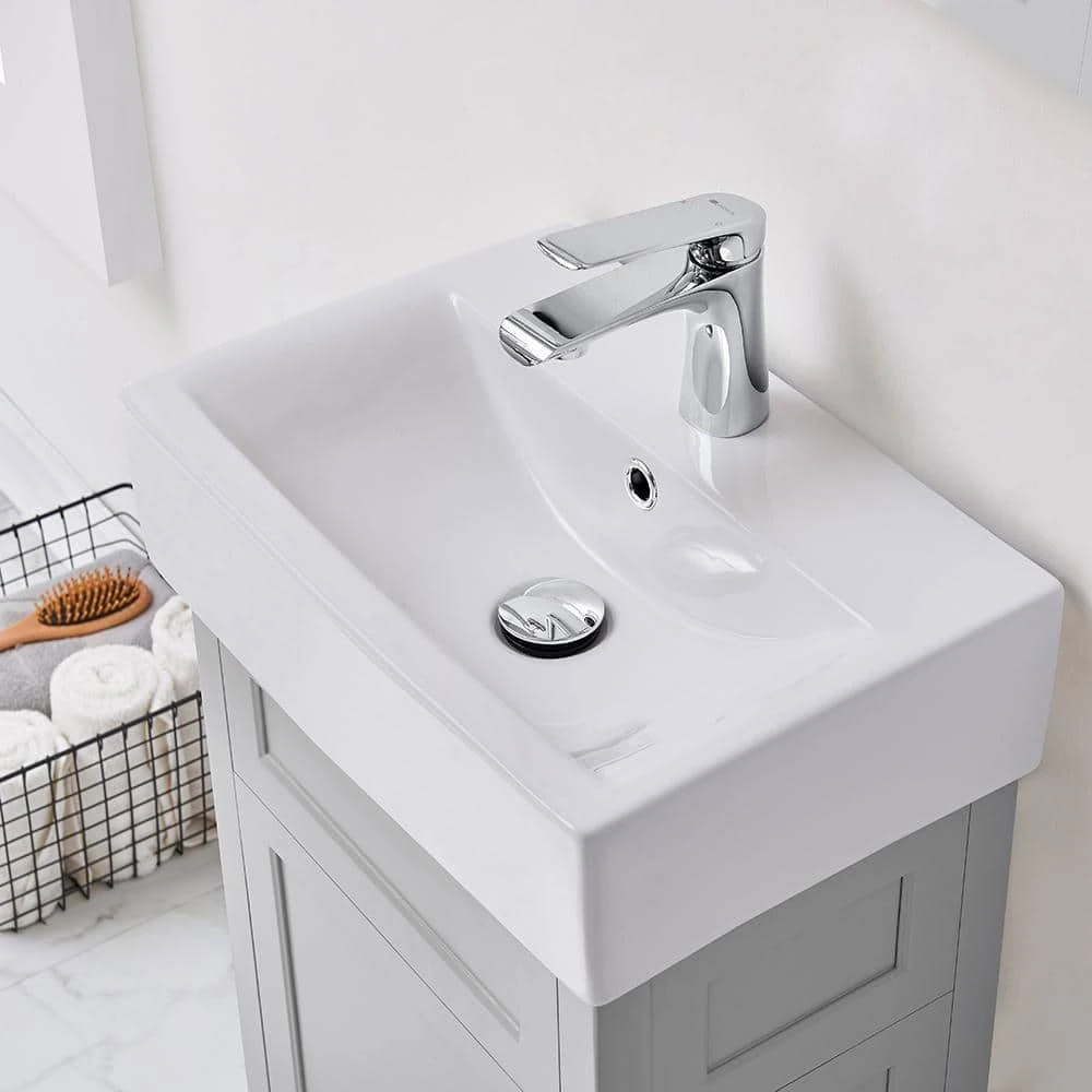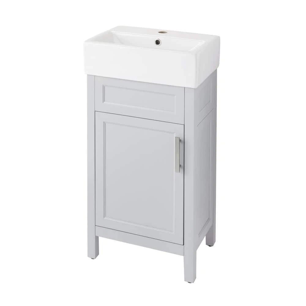Add warmth to any bathroom decor with the Arvesen 18 in. Vanity in Dove Gray finish. With an included concealed shelf and ceramic basin, this vanity has ample space without compromising aesthetics. Perfect to update your half bathroom or powder room.