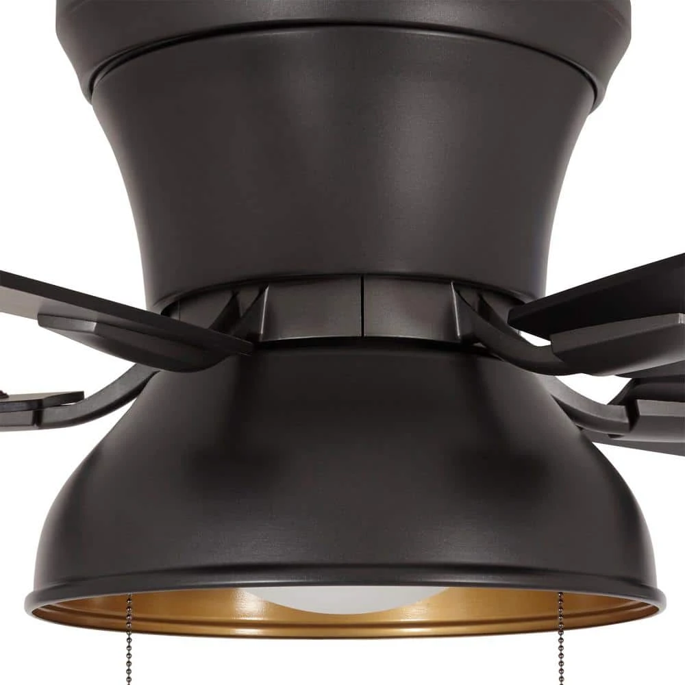 The 52 in. LED Natural Iron Ceiling Fan flush mount has a very craftsman style design. The reversible blades are in black and trendy Seasoned Wood finishes that will give you options to coordinate with your room. This fan is only 12.6 in. in height if celling height is an issue and includes (2) 9-Watt LED bulbs for energy efficiency.