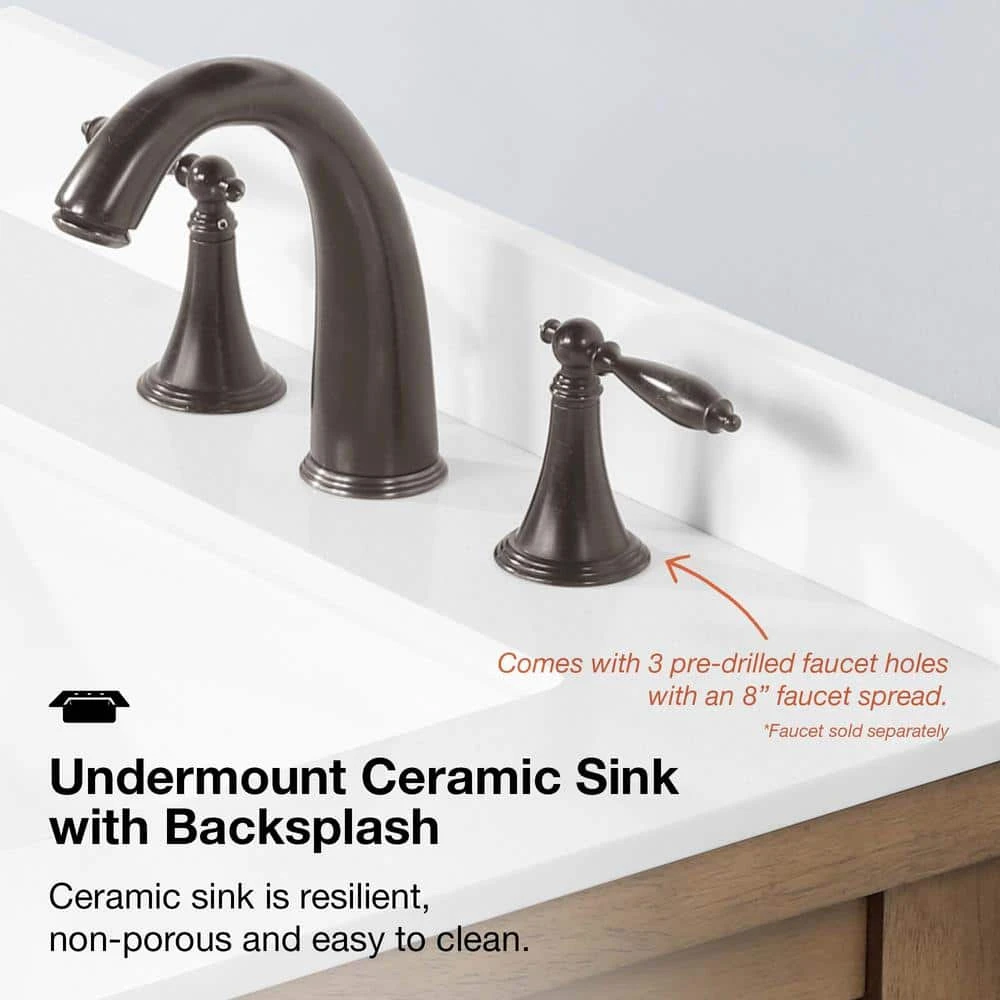 - Features a 20 in. x 15 in. undermount ceramic sink pre-assembled to countertop