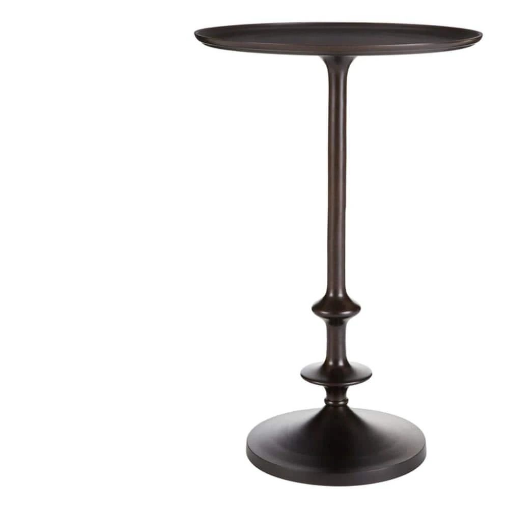 Our Home Decorators Collection Bellkirk accent table brings understated elegance to any space. The round side table has a classical shape that’s perfect next to a roll-arm sofa or sleek track-arm chair. It’s crafted entirely of metal and sealed with a lustrous bronze finish.