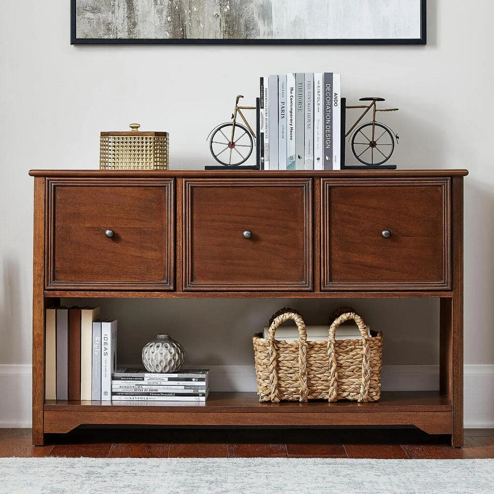 Keep your place looking tidy with this Bradstone 3 Drawer Walnut Lateral File Cabinet. It features an elegant walnut finish along with a durable wood frame. Use this cabinet for your home office or in the workplace.