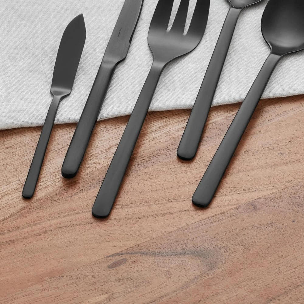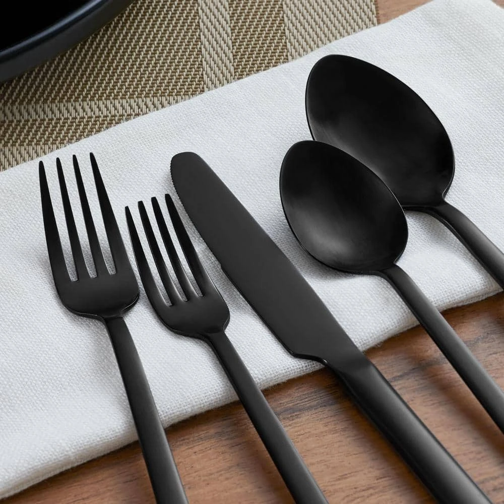 - Brenner 20-piece flatware set made with 18/0 stainless steel and a matte black finish
