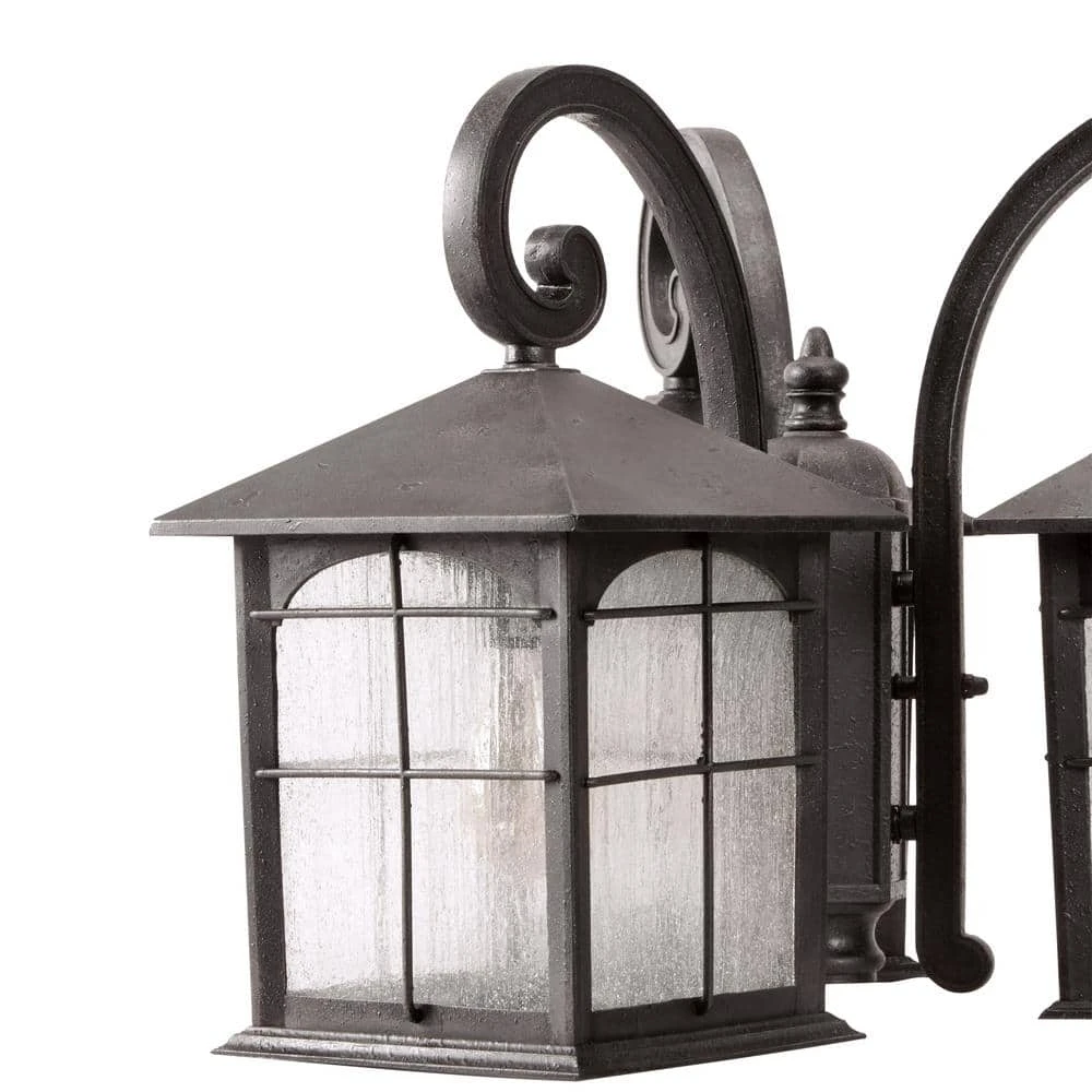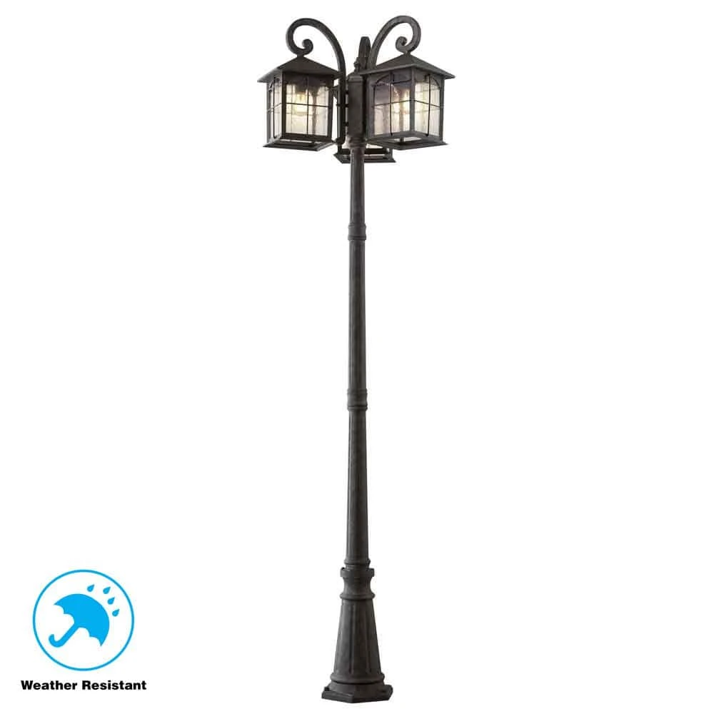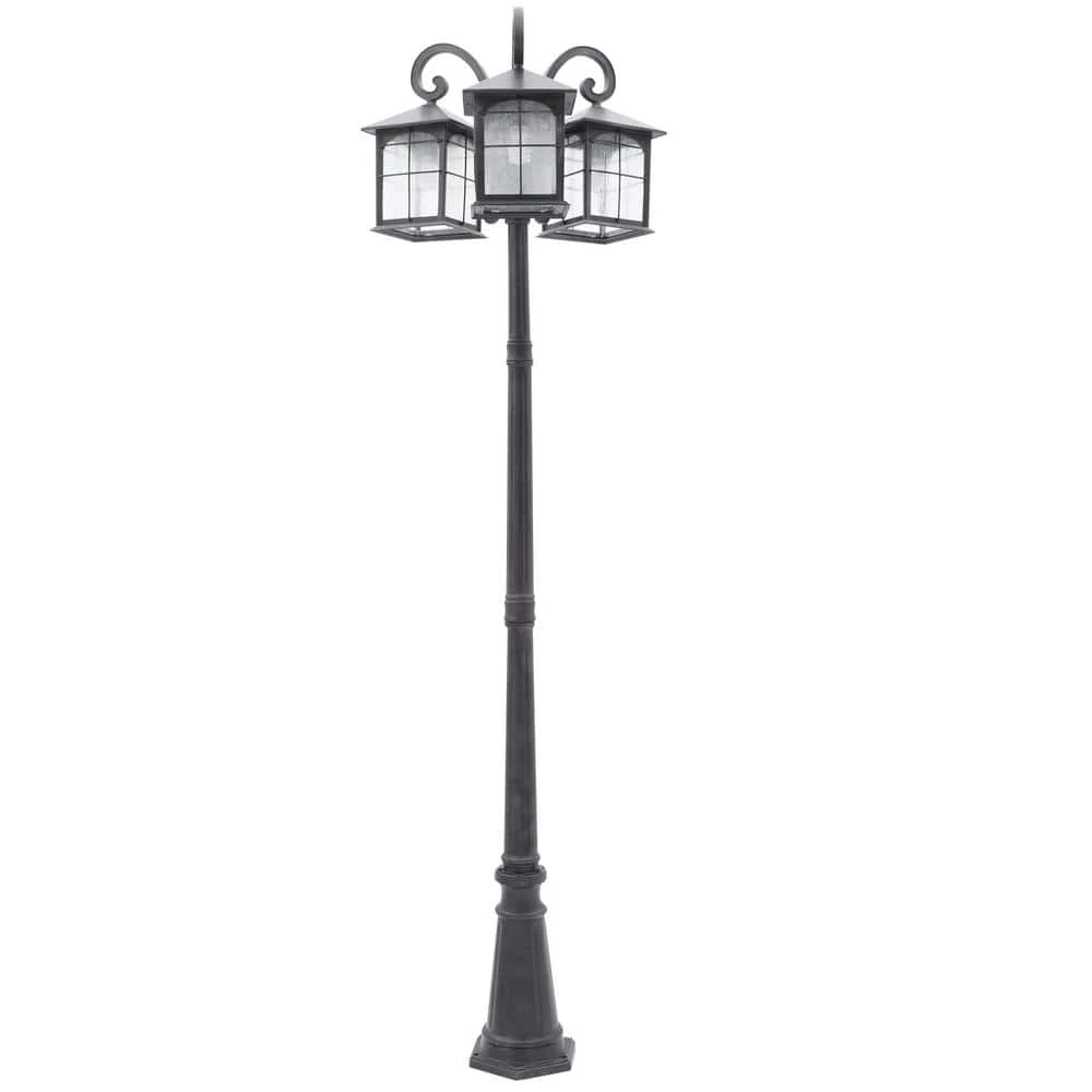 Bring ample illumination, added safety and a touch of character to your driveway or pathway with the Brimfield Outdoor Post Light from Home Decorators Collection. Elegantly crafted of cast aluminum in a rustic street-lamp design, this vintage find features an aged iron, weather-resistant finish that inhibits rust and corrosion, while the clear, seedy glass shades and 3-head design provide plenty of warm, bright illumination. As stylish as it is durable, this outdoor post lamp makes a stunning focal point on its own or in pairs and coordinates beautifully with other items from the Brimfield collection to create a complete, polished look for your home.