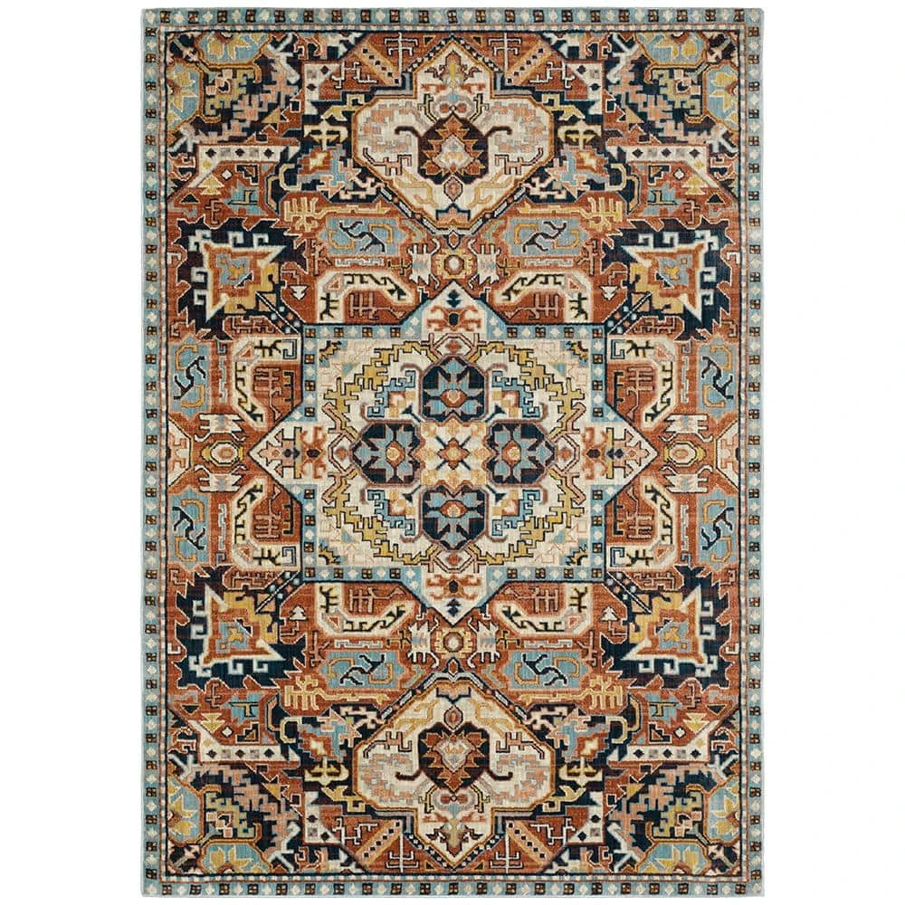 Cadence Multi 5 ft. 3 in. x 7 ft. Area Rug spotlights saturated pastel shades of coral, sky blue, violet and butterscotch coupled with cool neutrals, spicy cinnamon and deep navy. Machine-woven of soft, space-dyed polypropylene. This rug is made with stain-resistant fabrics and has fade-resistant materials. Cadence features a global traditional pattern making it great for any space.