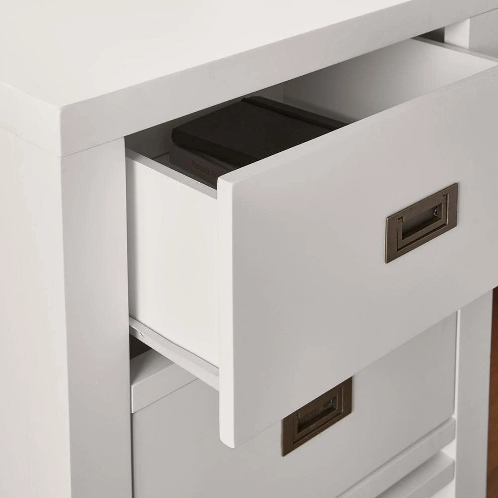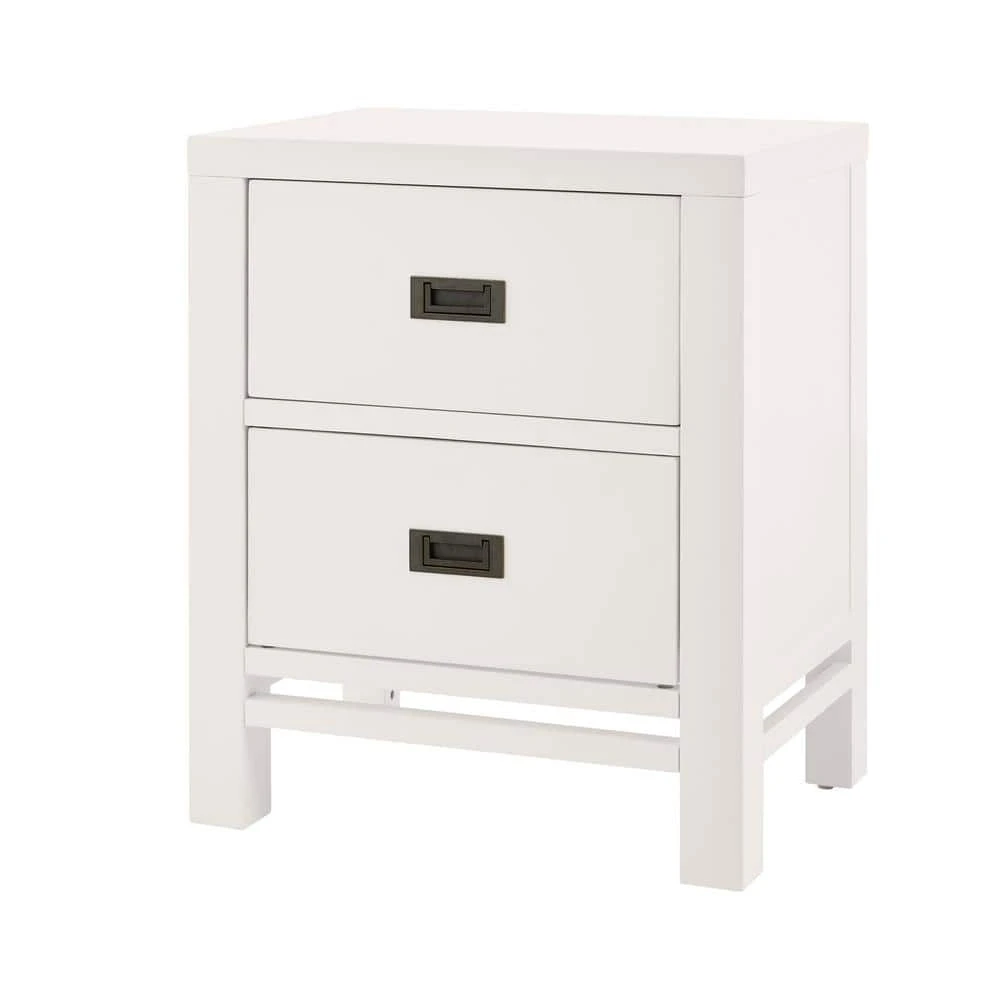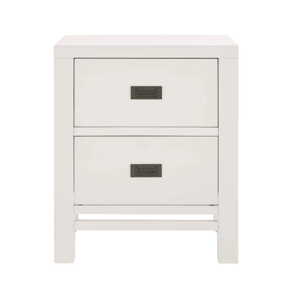 Add a perfect perch for a lamp and picture frames to your bedside with this HDC Campaign nightstand. A bright white finish adds a light, airy look to your abode, and the two pullout drawers keep your watch, journal, jewelry and other personal items tucked neatly out of sight. Durable mahogany construction stands up to regular wear for a lasting addition to your bedroom set. With a simple setup, this HDC Campaign nightstand is easy to assemble.