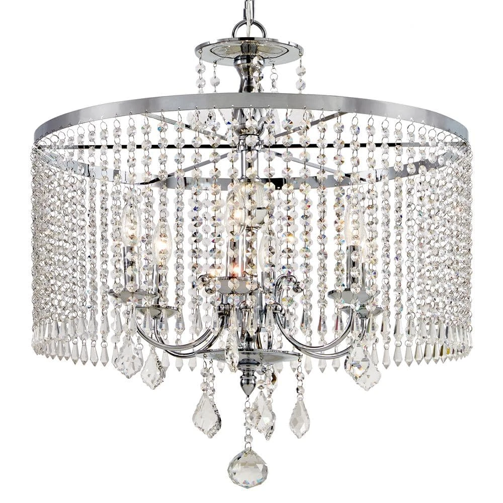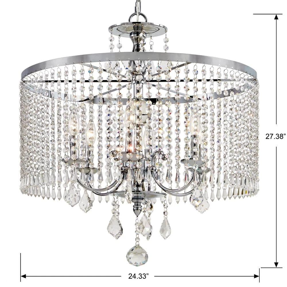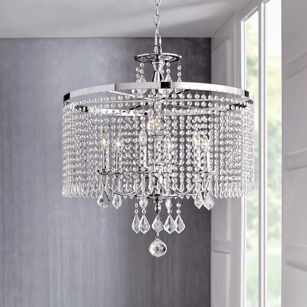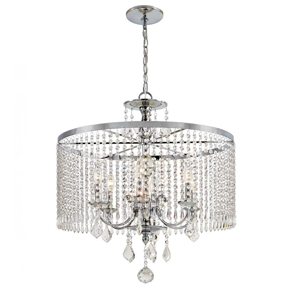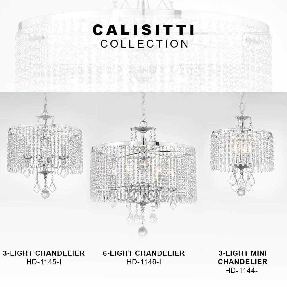 The Calisitti 6-light chandelier is so elegant it is dripping in crystal. From the top font, to the shade and all the way to the bottom of the pendant are different sizes and cuts of crystal. The subtle Polished Chrome finish allows the crystal to be the real star.