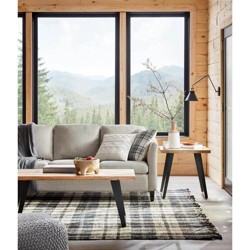 Our Home Decorators Collection Crosbyne coffee table is a blend of modern and organic influences. Its natural mango wood top is finished to appear as if it has live edges. Splayed metal legs counterbalance the rectangular tabletop. The table is a stylish choice for modern, rustic and farmhouse furnished living rooms.