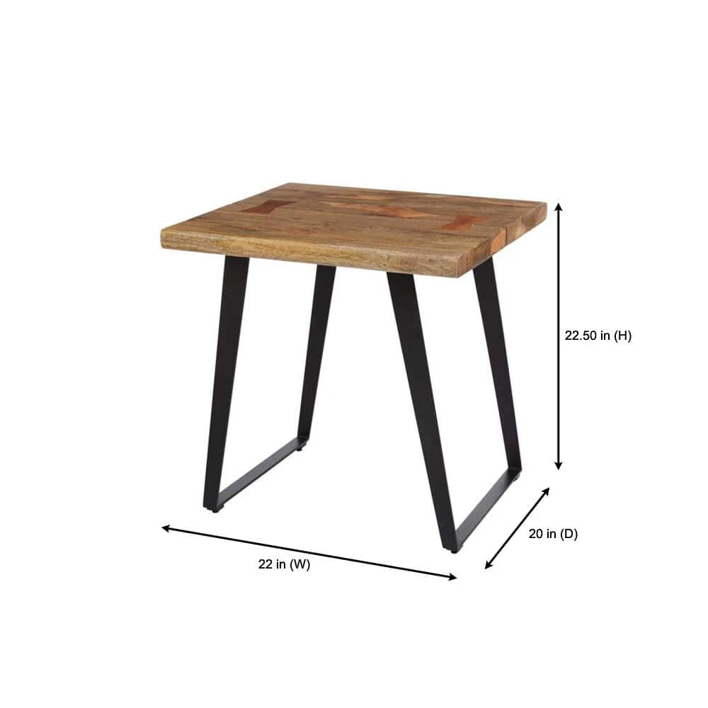 Our Home Decorators Collection Crosbyne end table is a blend of modern and organic influences. Its natural mango wood top is finished to appear as if it has live edges. Splayed metal legs counterbalance the rectangular tabletop. The table is a stylish choice for modern, rustic and farmhouse furnished living rooms.