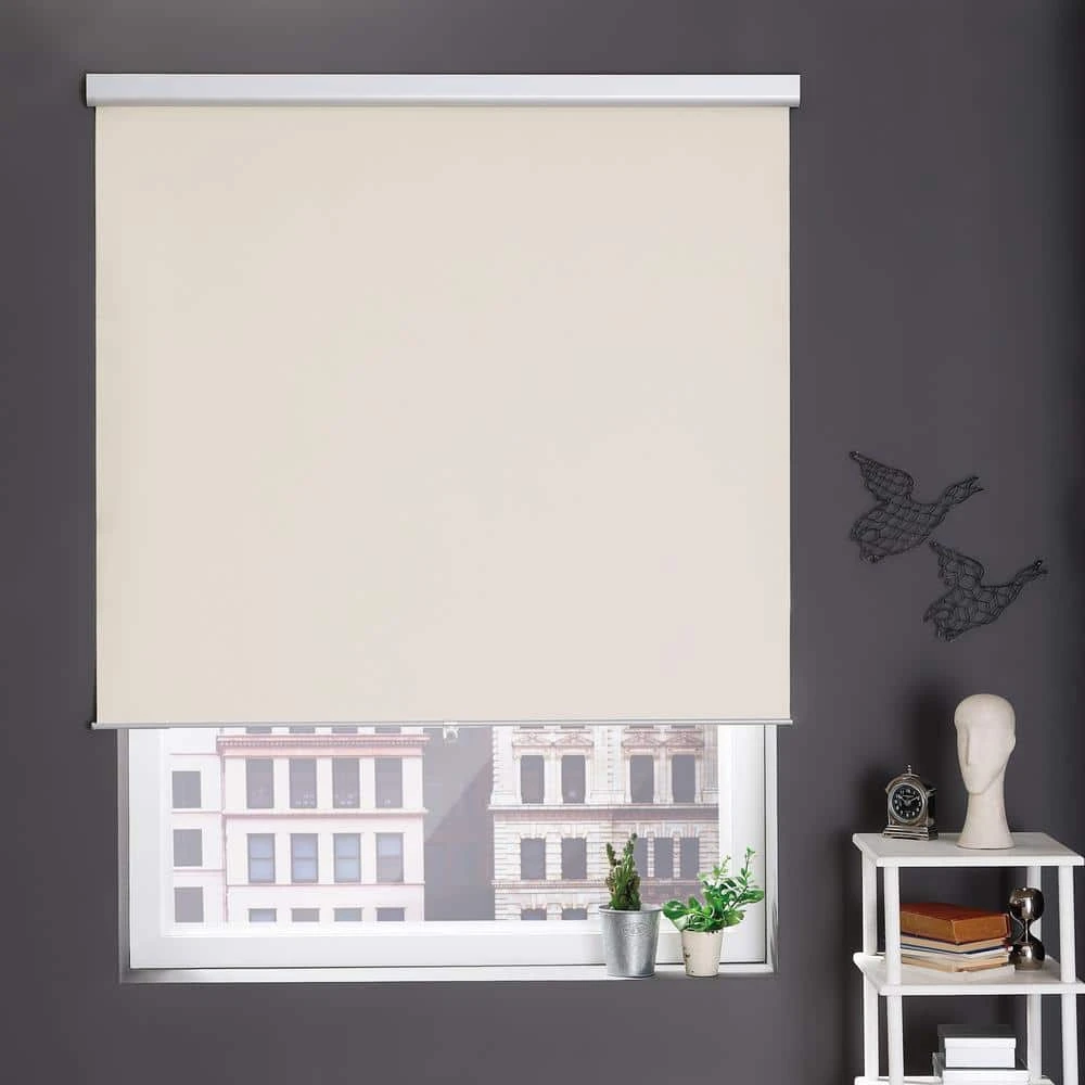 Cream vinyl roller shade mounts inside or outside window or door