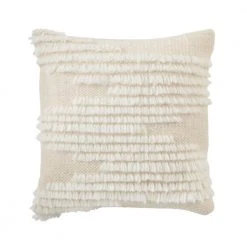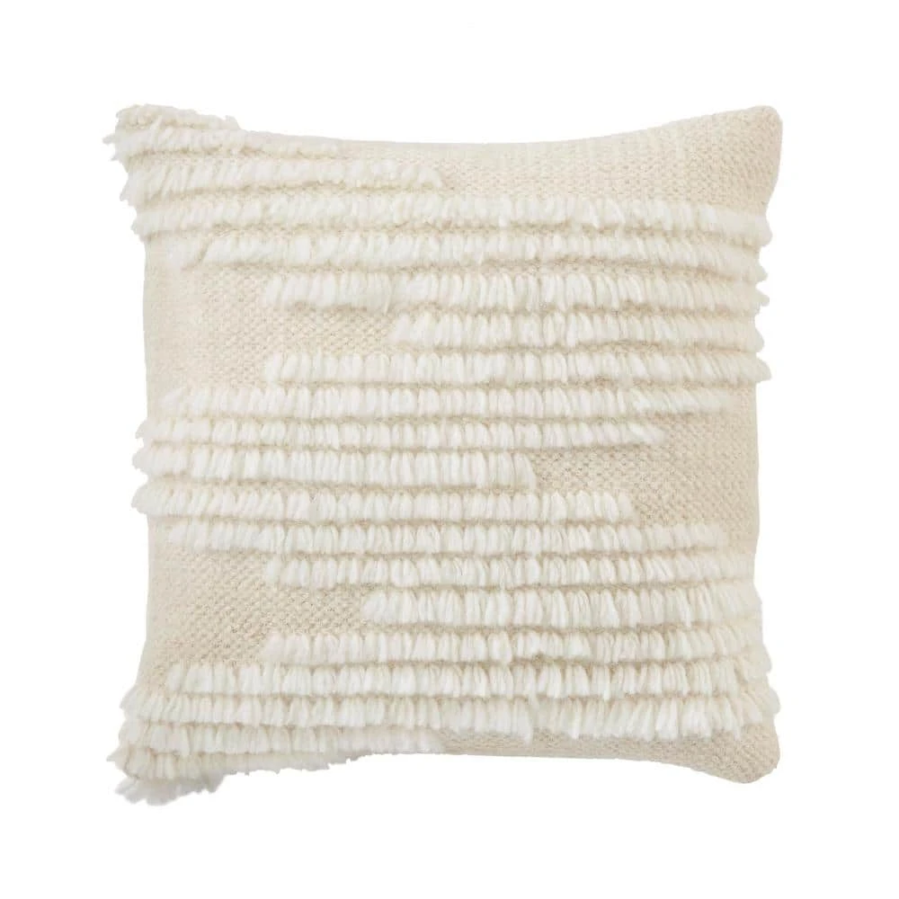 The Home Decorators Cream Fringe Textured Throw Pillow features a compelling global inspired design brimming with elegance and grace. The perfect addition for any home, this pillow will add eclectic charm to any room. The meticulously woven construction boasts durability and will provide natural charm into your decor space. Featuring a cream fringe textured front with a solid color back, this square throw pillow is perfect for coordinating with other decorative pillows and pieces. Both the decorative cover and poly-fill insert is included, and the zipper closure offers easy removal for added convenience. For best results spot clean only and line dry.