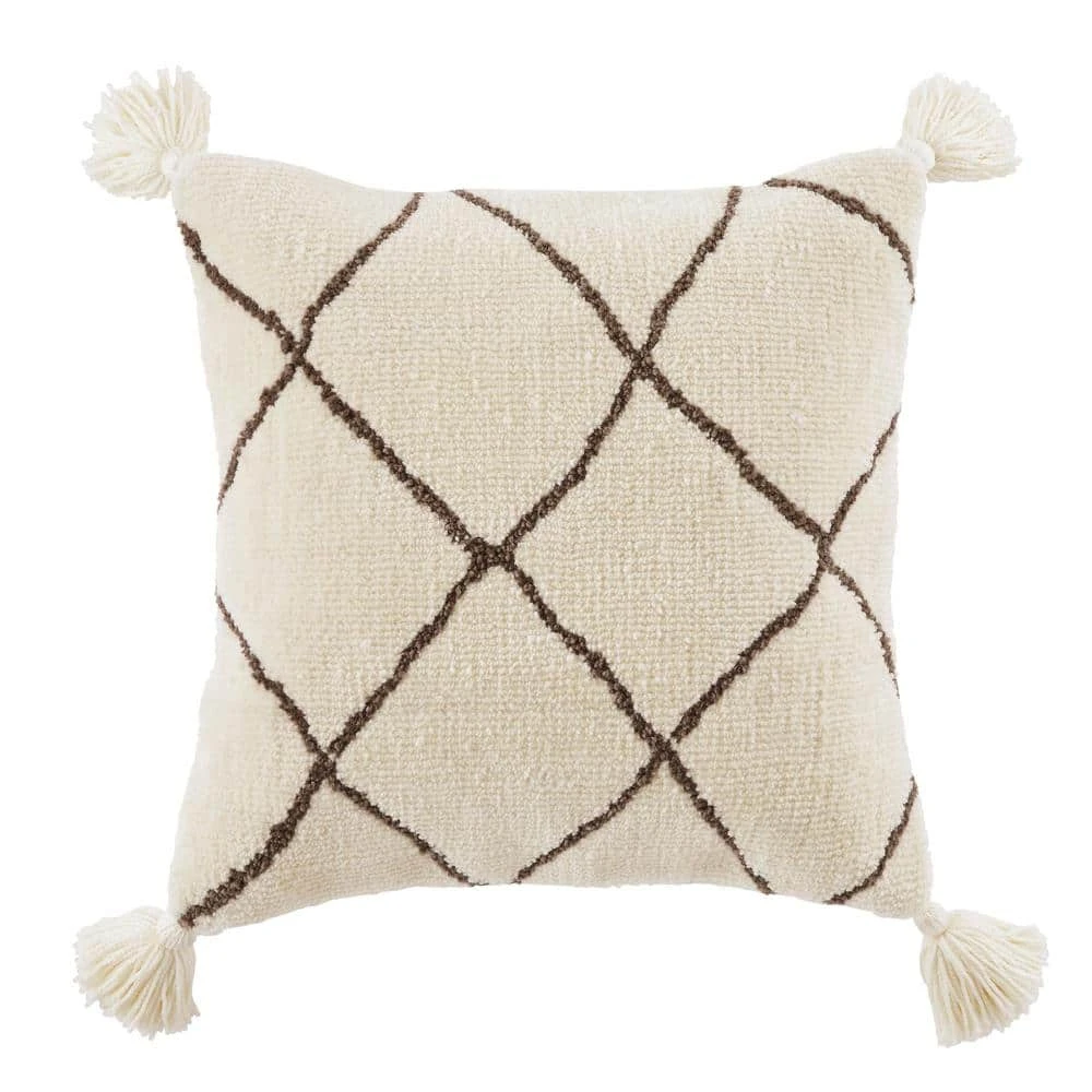 Our Home Decorators Collection Throw Pillows feature compelling global inspired designs brimming with elegance and grace. The perfect addition for any home, these pieces will add eclectic charm to any room. The hand knitted construction of this square standard pillow offers a comfy and natural quality that give your space a warm and inviting atmosphere. Featuring a cream diamond design with tassels, this square throw pillow is perfect for coordinating with other decorative pillows and pieces. Both the decorative cover and poly-fill insert is included, and the zipper closure offers easy removal for added convenience. For best results, spot clean only.