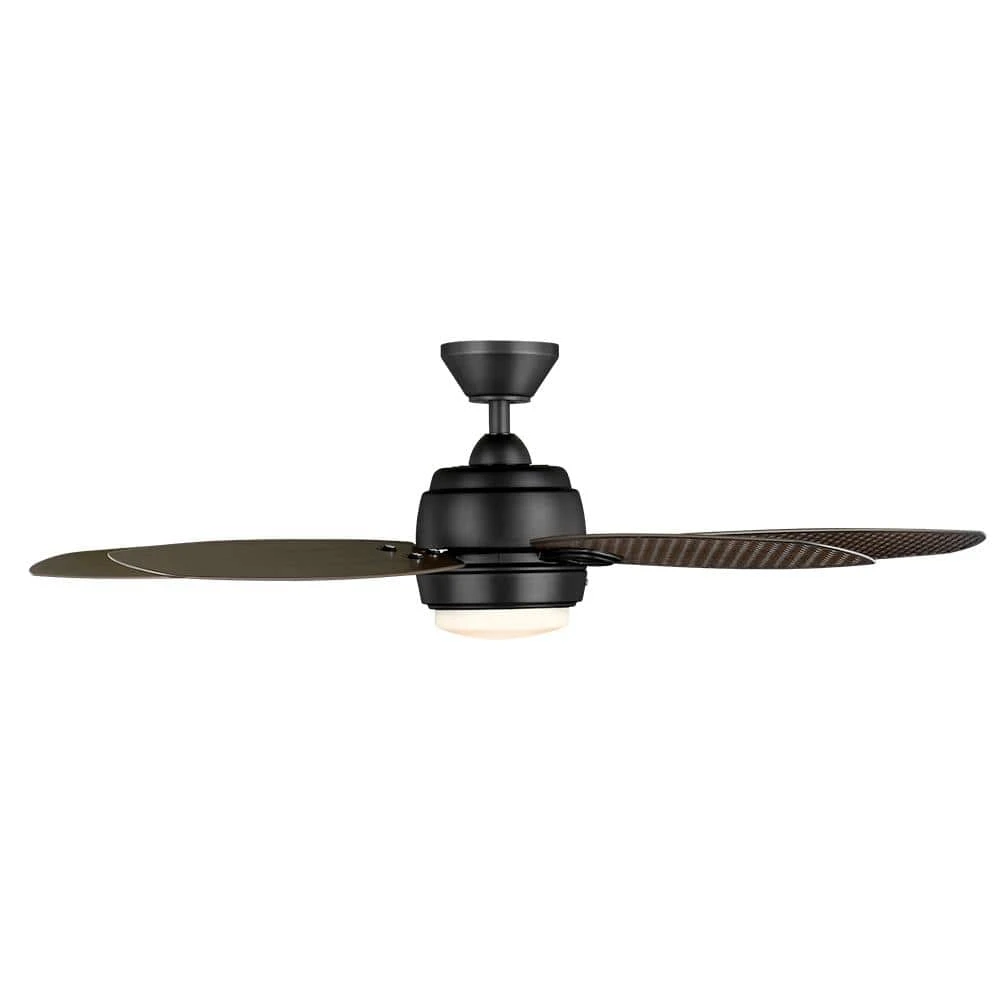 The 52 in. Daniel Island Outdoor ceiling fan is the perfect solution to circulate air in your outdoor living spaces. The fan is wet rated making it perfect for use in any outdoor setting, but looks great indoors as well. The fan’s rich matte black finish is complemented with 5 tobacco wicker finish ABS blades. The integrated and dimmable 21-Watt LED light kit allows you to choose between 6 different light temperature settings ranging from warm white (2700K) to daylight deluxe (6500K) to blend with your home’s existing lighting. The light includes a frosted shatter resistant plastic shade that mimics frosted glass with the added benefit of not breaking if dropped during cleaning or hit with something in an outdoor setting. Fan control is at your fingertips with the included remote that operates the fan’s 3 speeds and light (on/off/dimming/color temperature). Installation is a breeze with QuickFit features like a slide-on mounting bracket, quick connect receiver plug, twist and lock shade and QuickInstall blades.