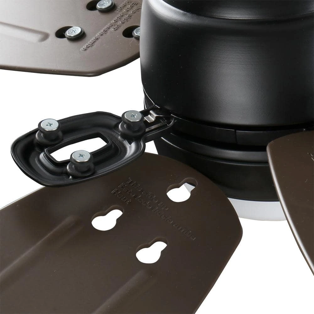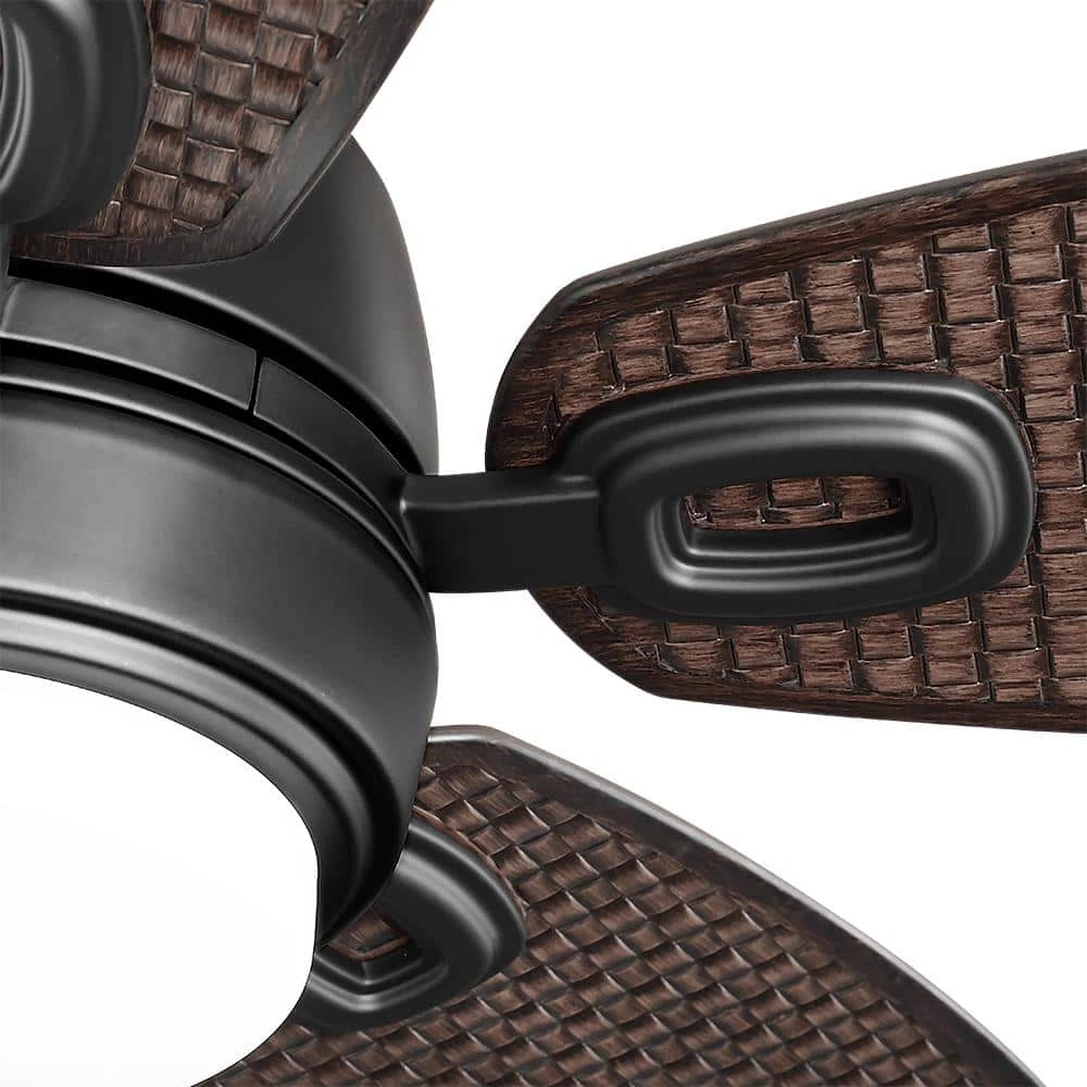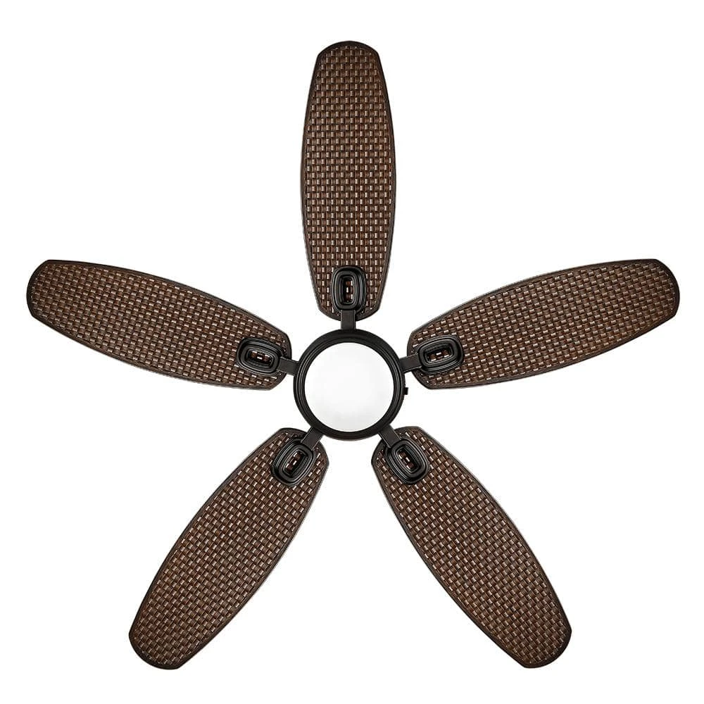 - Matte black finish with 5 ABS blades in tobacco wicker finish