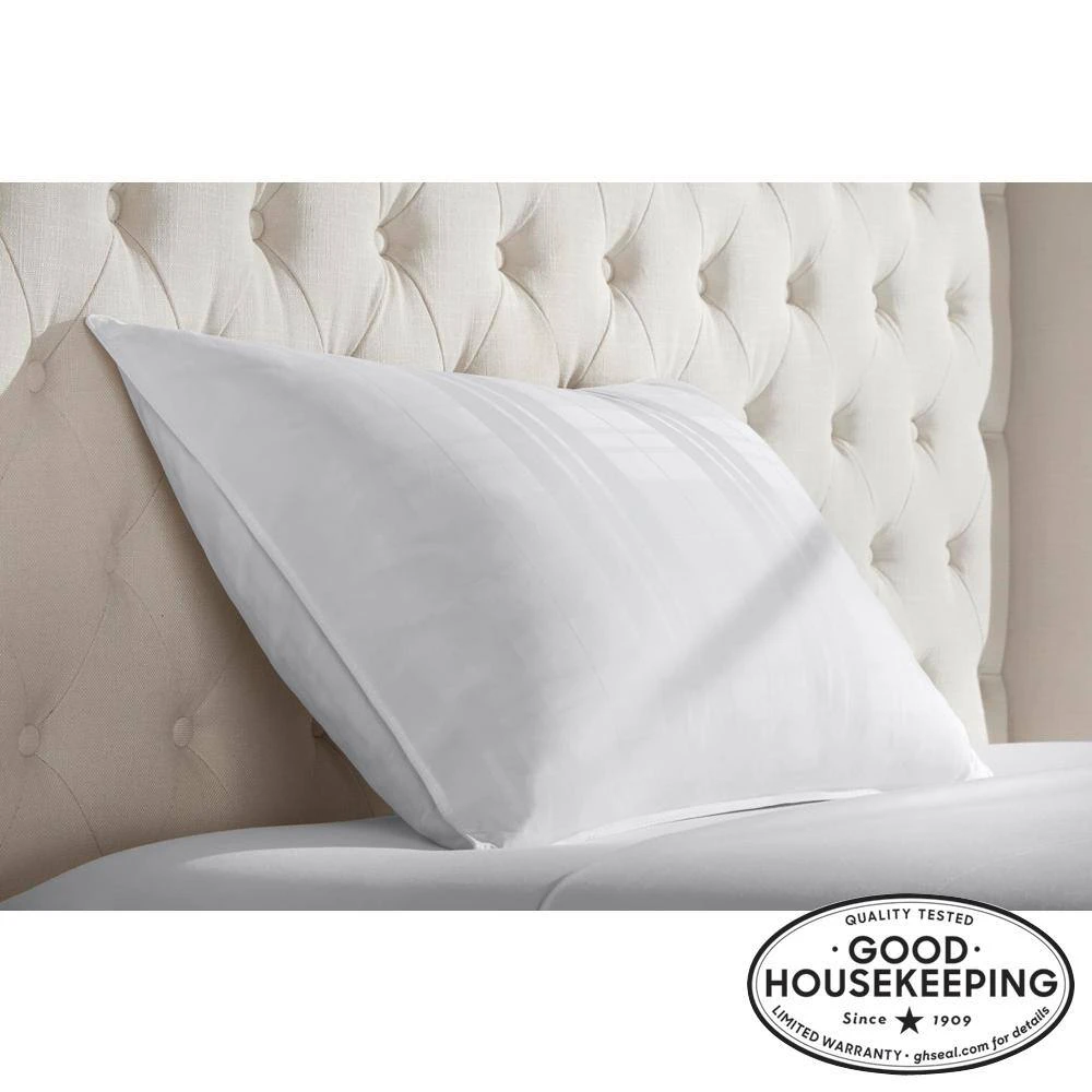 This down and feather chamber pillows offers more support than the average down pillow. The multi-chamber design of the pillow features plush soft 550 fill power duck down on the outside, while the inside chamber is filled with duck feather for support. We wrapped the pillow in a soft 250-thread count sateen dobby woven cotton shell, creating an elegant look, while preventing the down and feather from spilling out. The medium density rating accomodates most sleep styles. RDS certified to ensure down and feather is sustainably sourced. We also are proud that Good Housekeeping has given us their Seal of Approval after running through a battery of internal tests to confirm the quality and performance.