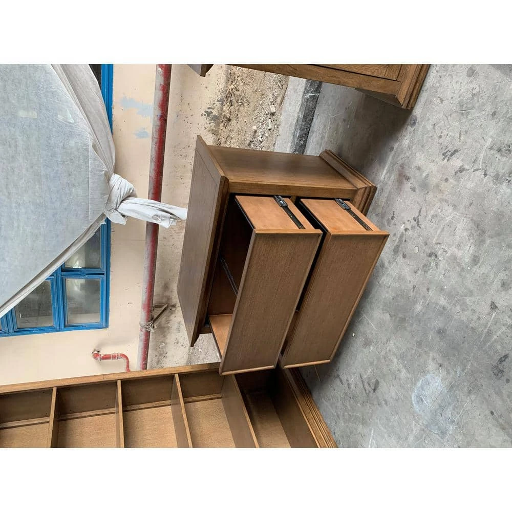 Keep your files sorted and stored safely in our 2-drawer Eldridge File Console. This wood file cabinet has a sturdy, classic farmhouse-inspired design, with angled molding at the top, fluted molding at the foot and recessed-panel drawers. Round hardware in an antique brass finish completes the classic look.