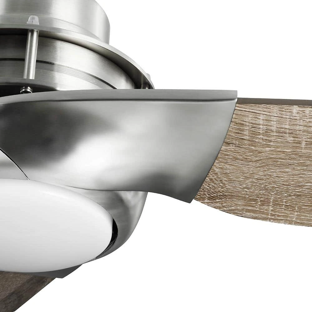 - Brushed nickel finish with 3 vintage aged pewter finish blades