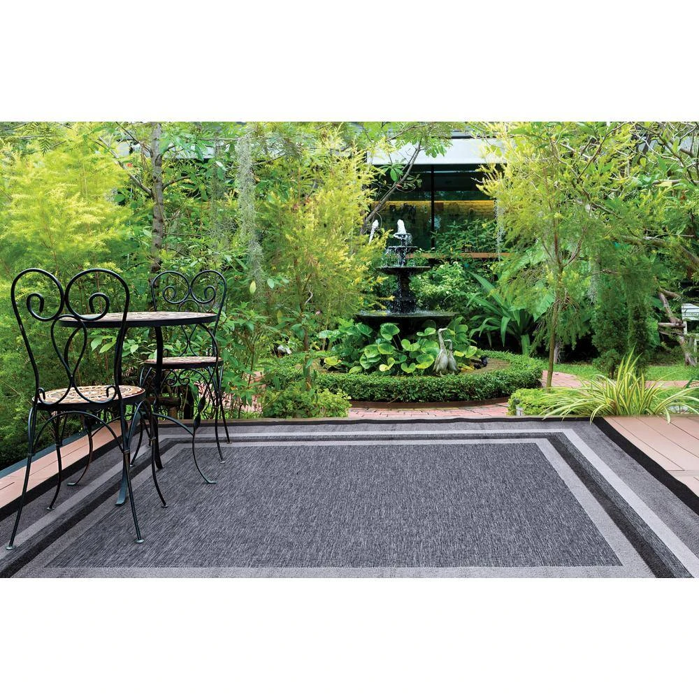 Set an indoor or outdoor stage with this gorgeous rug. Whether you have a covered patio surrounding a courtyard with a pool, or a small nook, let this border look make you feel you are in the gardens of famous Alhambra palace. It’s your choice to use this as indoor or outdoor, this multi textured rug will turn your space into an elegant escape. Featuring a high/low pile textured effect this overall low pile rug is easy to maintain. Add a rug pad for additional benefits such as non-slip application, prolongs wear and tear life cycle, as well as protection for the floor underneath your area rug if kept indoors.