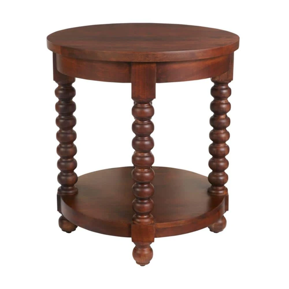 Classic Home Decorators Collection Glenmore round end table for any home. Designed with eye-catching turned legs, the dramatically scaled table is perfect for a living room, sunroom or any area needing a timeless touch. The round side table’s lower shelf stores a basket of books and other lounge time essentials.