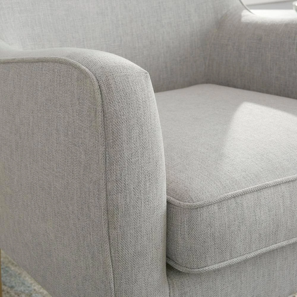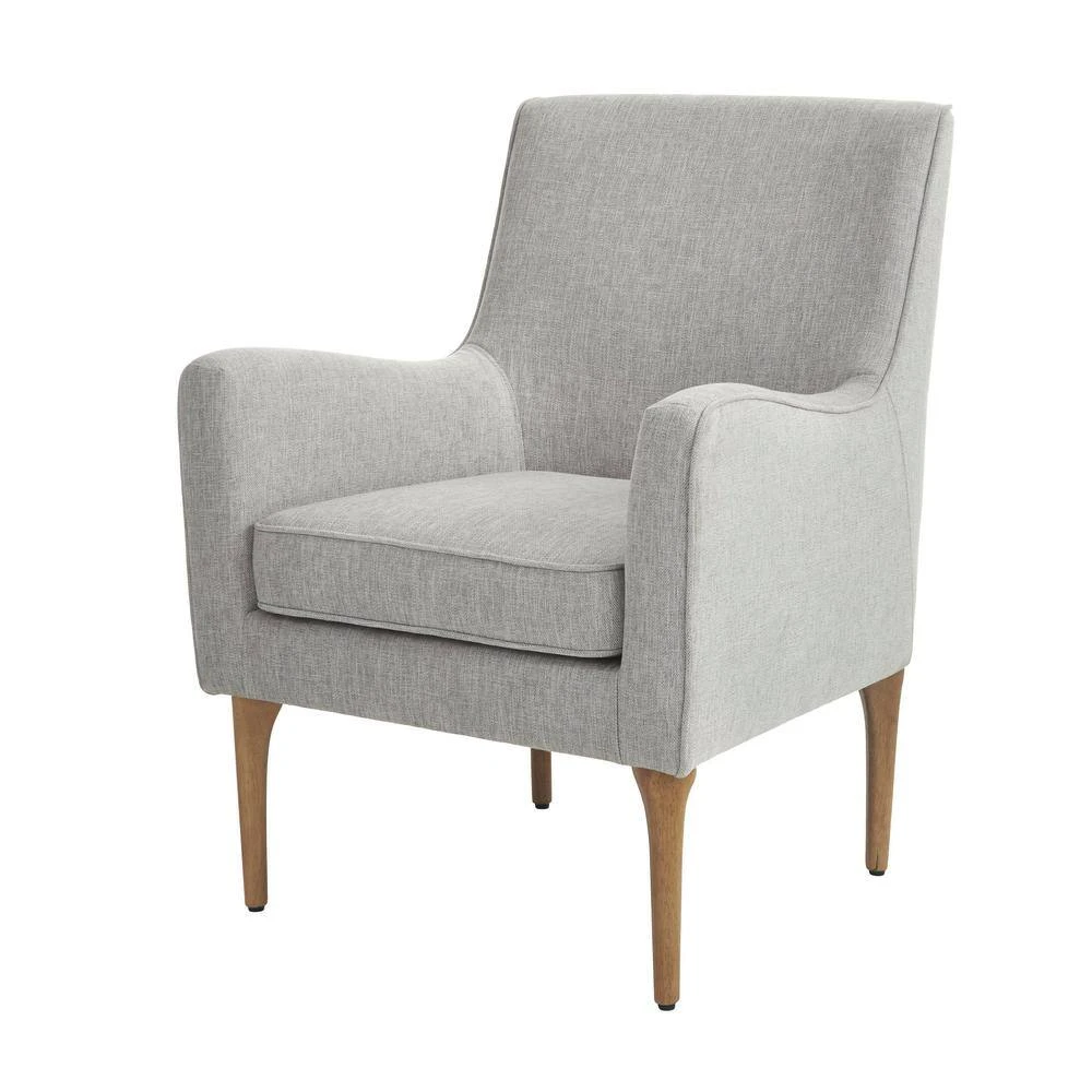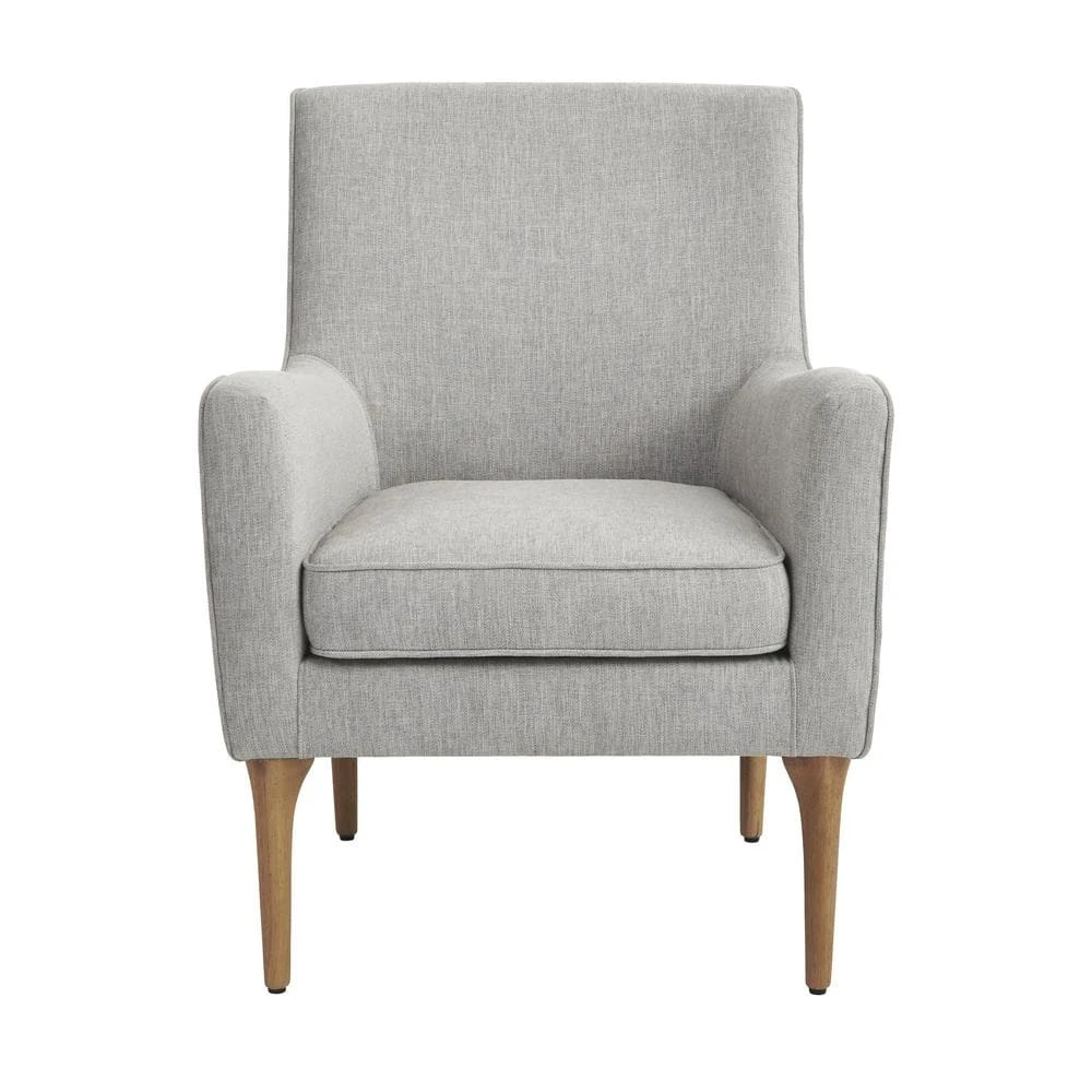 Imbue your living room with modern charm when you add this HDC Greenlee accent chair. The simple silhouette and square arms create a contemporary silhouette, pairing perfectly with plush sofas and cozy love seats. A patina finish gives the wood legs a light touch to complement the neutral Solartex stone-gray upholstery. This chair features soft foam padding and a thick seat, cradling you in cushioned comfort. With a high back, this HDC Greenlee accent chair makes it easy to sit back and enjoy your favorite book or TV show.