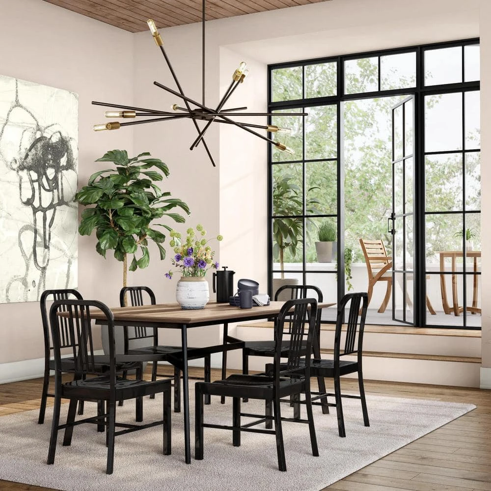 The Home Decorators Collection Halford rectangular dining table mixes wood and metal in a mid-century profile. Up to six have room to dine, play games and gather. The sturdy metal frame and clean-lined top pair perfectly with modern minimalist decors.
