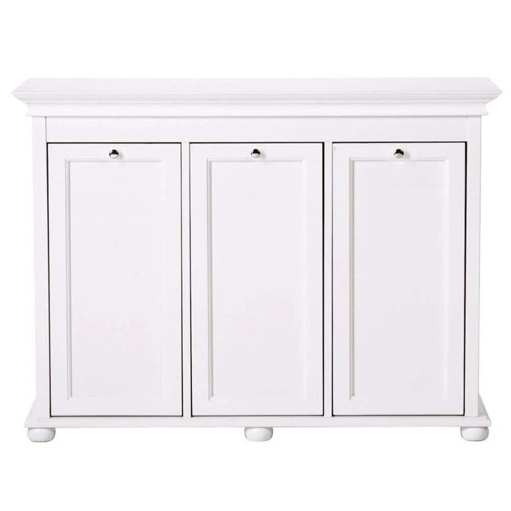 The tilt-out design of the Hampton Harbor Triple Hamper from Home Decorators Collection allows you to conveniently sort and store your laundry in style. This traditionally designed laundry hamper is durably constructed to withstand heavy use. Its timeless crown molding, recessed panels and bun feet complement a variety of decorating styles, while its lovely white finish brightens your bath. You might also try it in the kitchen to sort recyclables.