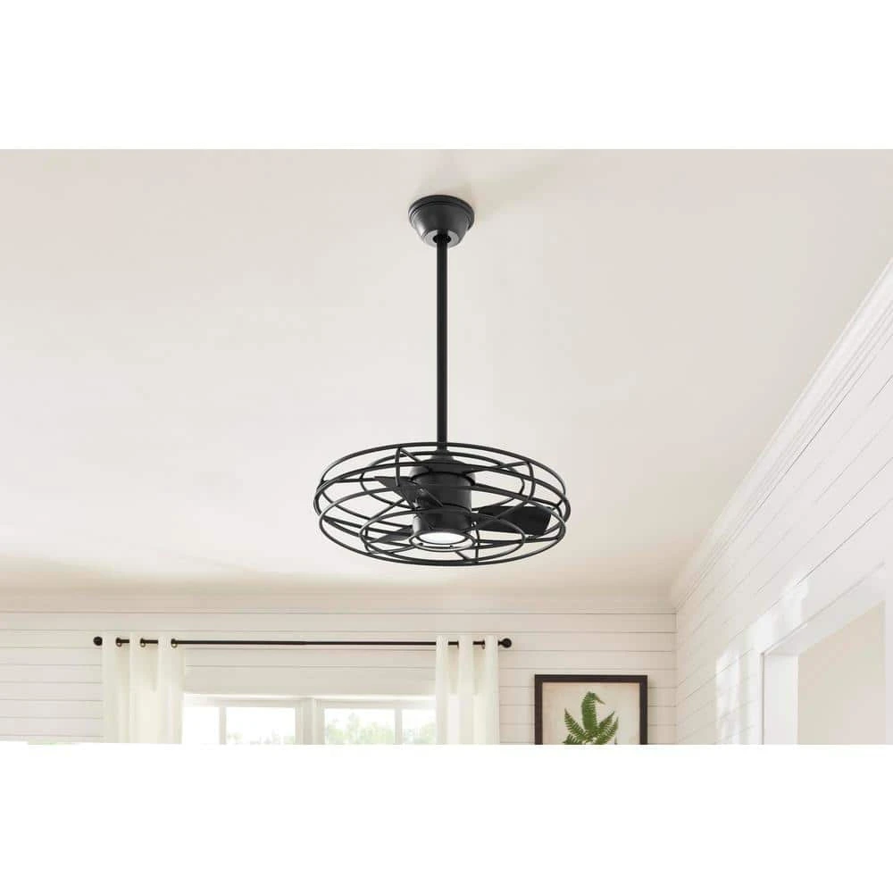 The Home Decorators Collection Heritage Point 25 in. Indoor/Outdoor Natural Iron pendant fan will catch everyone’s eyes because of its unique design and functionality. The integrated LED light kit provides soft white light. Also, it comes with a remote control that can independently control the light brightness and speed of the fan. The fan is also damp rated to allow covered outdoor installation.
