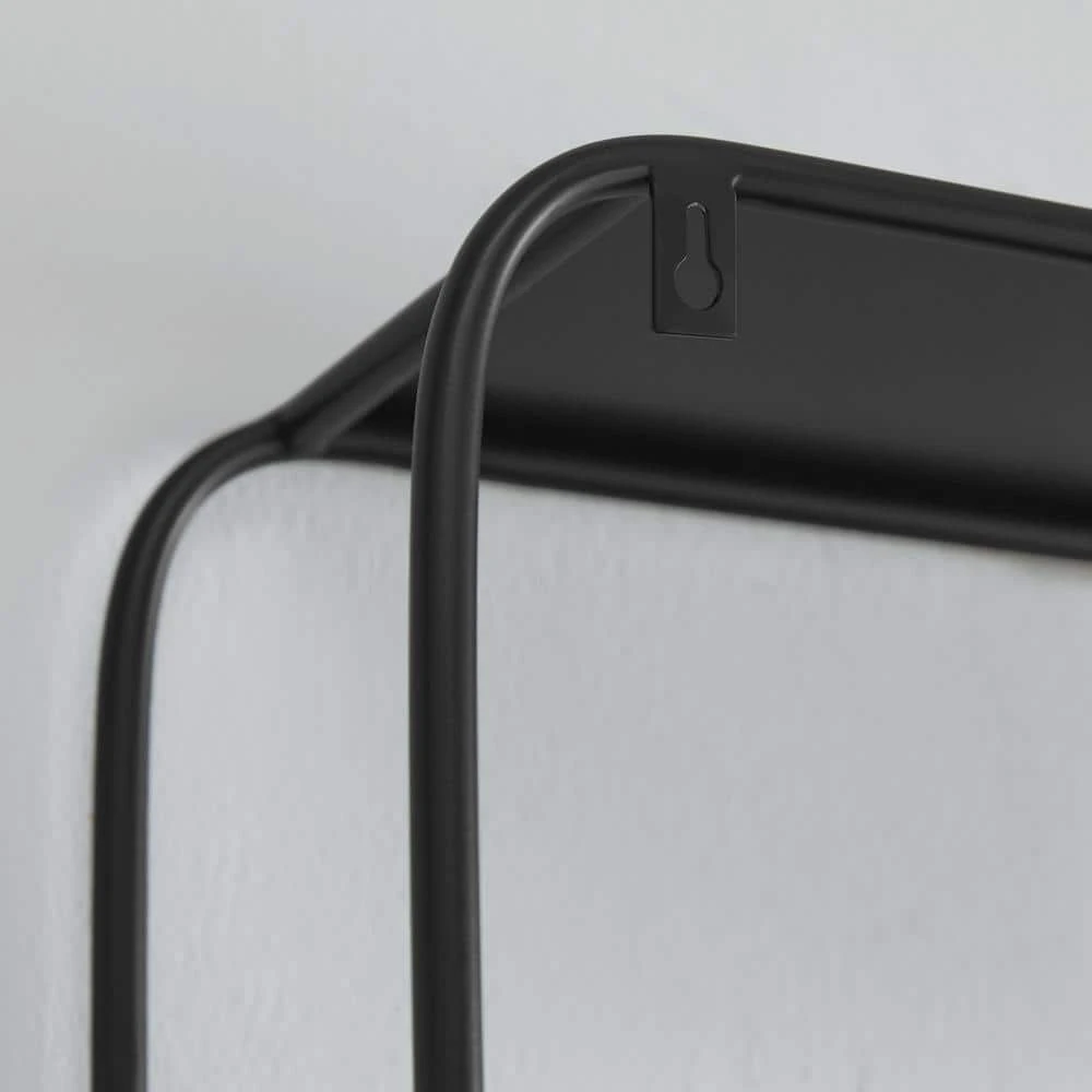 - Industrial-style black metal wall shelf offers utilitarian chic