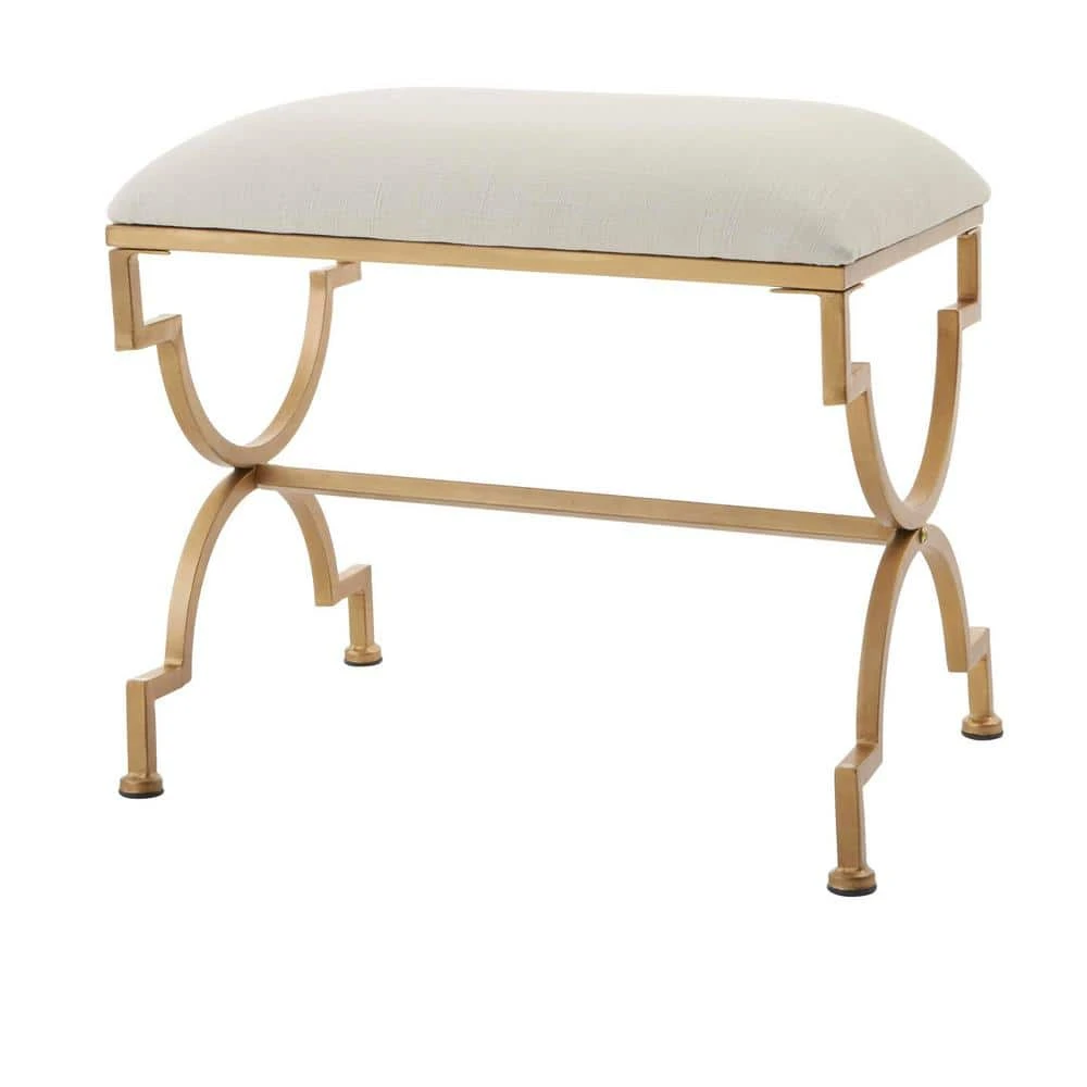 This metal stool adds a touch of glam to your vanity table. It’s metal frame is finished in a bright gold and topped with an ivory upholstered seat allowing this stool to blend with a variety of color schemes.