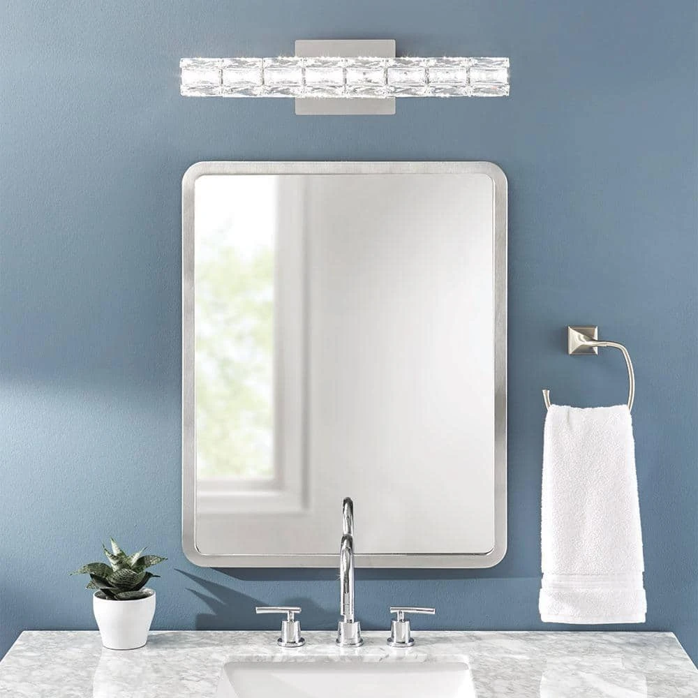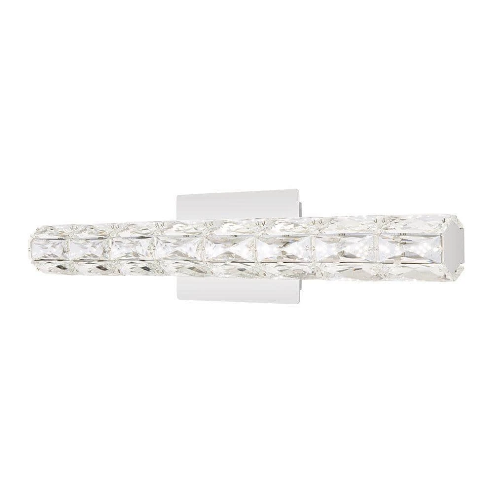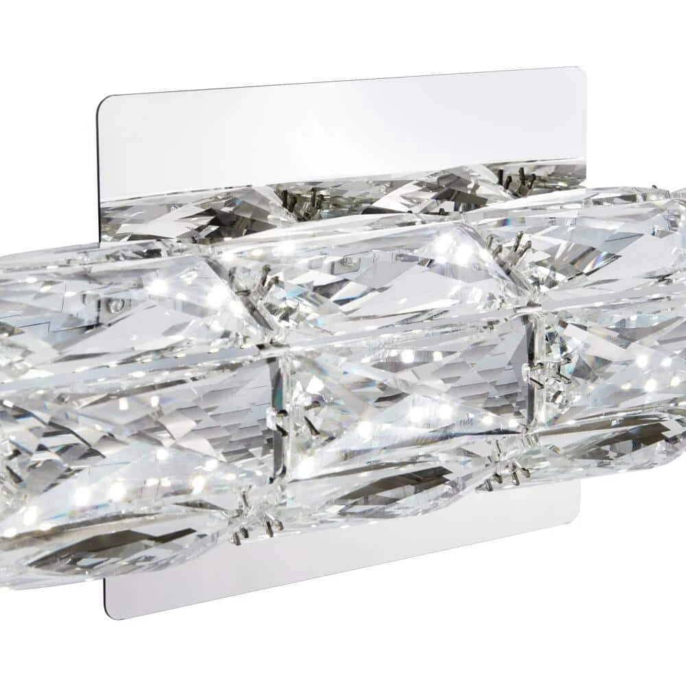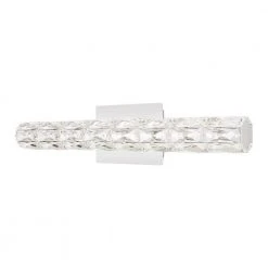 The Keighley Collection from Home Decorators Collection offers modern, crystal shaded interior lighting for every room of the house. The Keighley LED bathroom vanity light features a polished chrome finish and elongated 24 inch linear shade made of glamorous crystal plates. Light from the integrated LEDs sparkles brightly out from the shade while the polished chrome reflects the light for even brighter illumination. The integrated LED module is low maintenance and means you will never have to change bulbs for the life of the fixture. This 24 inch vanity bar is the largest in the collection and is ideal for use over medium to large sized sinks and mirrors in bathroom and powder rooms. For coordinating crystal lighting, shop the Keighley Collection.