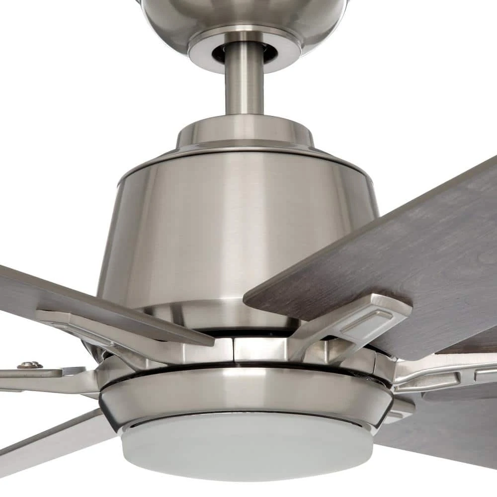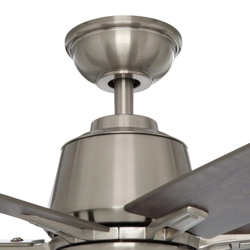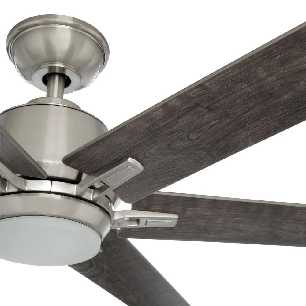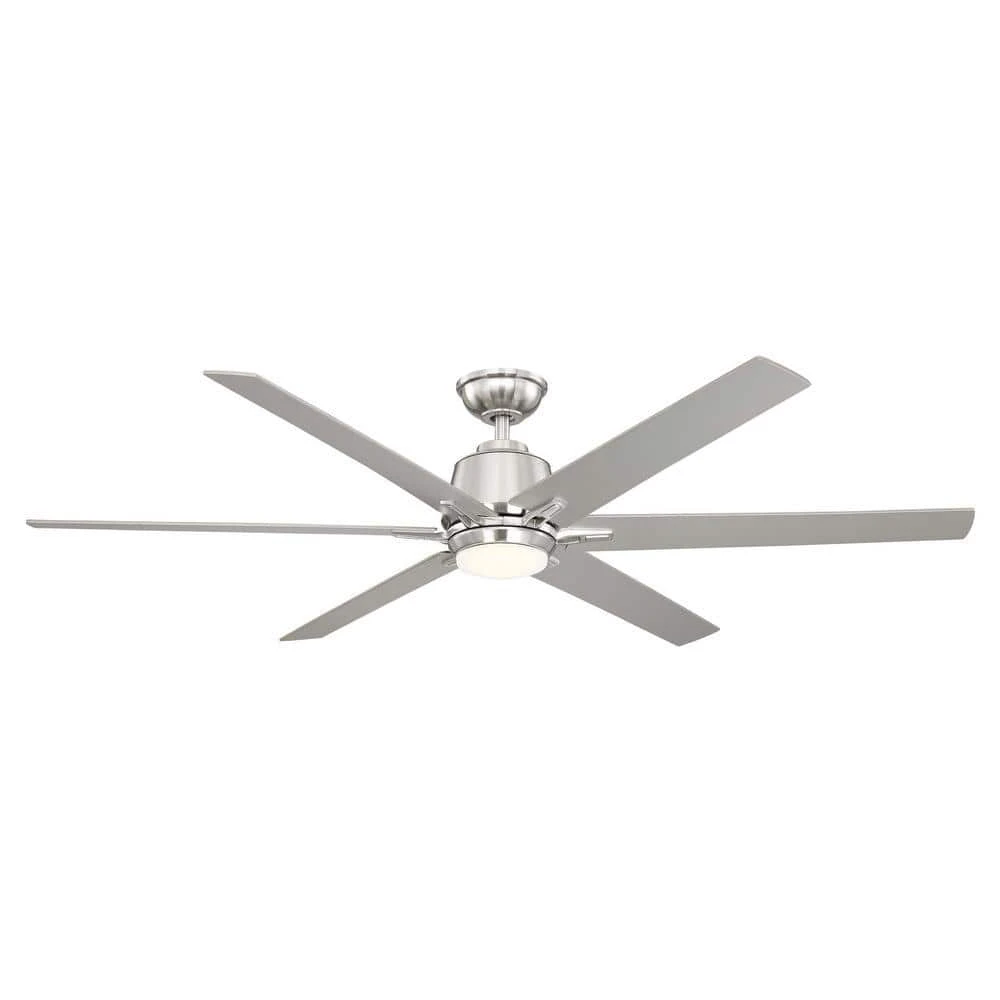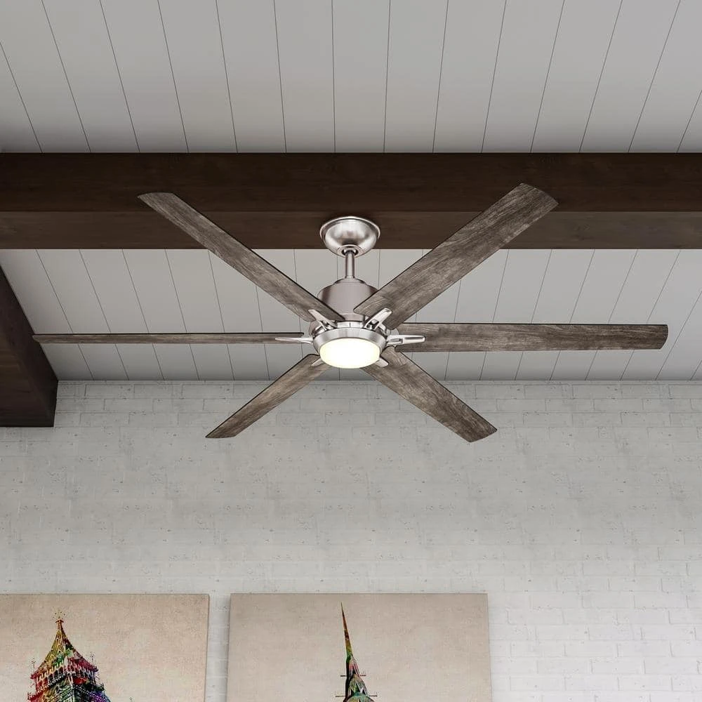 Transform any large room or loft in your home with the addition of this Kensgrove 64 in. ceiling fan. It features six reversible seasoned wood/sukver blades, and a dome-style light kit with a frosted opal glass shade. The LED light source produces a warm white light. Though mighty, the fan’s energy-efficient DC motor runs quietly. The DC motor has nine speeds, and the included remote controls the dimming and speed functions. DC motor fans are 70% more energy efficient than AC motor fans (when comparing efficiency (CFM/W) of DC vs AC motors in published FTC Energy Guides for ceiling fans).
