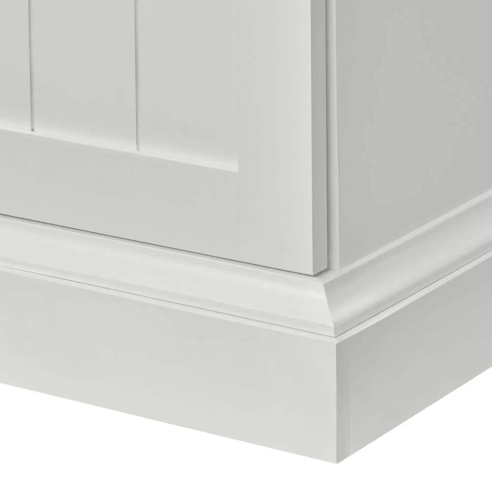- 2 sliding barn doors and 2 touch latch doors conceal side cabinets with 2 adjustable shelves each